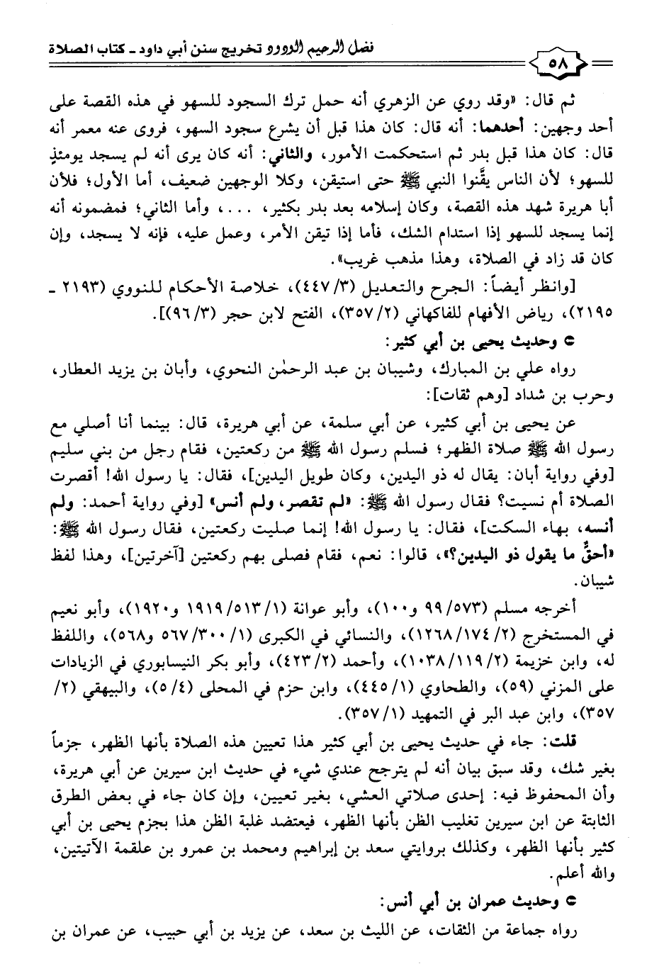 قلت: جاء في حديث يحيى بن أبى كثير هذا تعيين هذه الصلاة بأنها الظهر، جزمًا بغير شك، وقد سبق بيان أنه لم يترجح عندي شيء في حديث ابن سيرين عن أبى هريرة، وأن المحفوظ فيه: إحدى صلاتي العشي، بغير تعيين، وإن كان جاء في بعض الطرق الثابتة عن ابن سيرين تغليب الظن بأنها الظهر، فيعتضد غلبة الظن هذا بجزم يحيى بن أبى كثير بأنها الظهر، وكذلك بروايتي سعد بن إبراهيم ومحمد بن عمرو بن علقمة الآتيتين، والله أعلم.