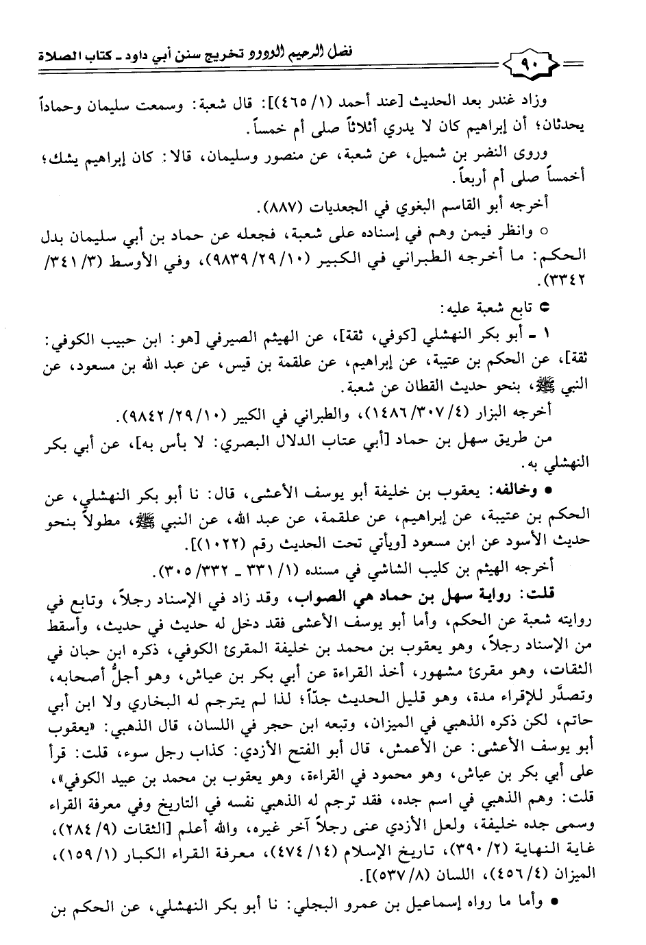 ١ - أبو بكر النهشلي [كوفي، ثقة]، عن الهيثم الصيرفي [هو: ابن حبيب الكوفي: ثقة]، عن الحكم بن عتيبة، عن إبراهيم، عن علقمة بن قيس، عن عبد الله بن مسعود، عن النبي - صلى الله عليه وسلم -، بنحو حديث القطان عن شعبة.