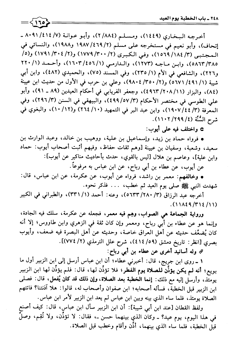 أخرجه البخاري (١٤٤٩)، ومسلم (٨٨٤/ ٢)، وأبو عوانة (٧/ ٤١٤/ ٨٠٩١ - إتحاف)، وأبو نعيم في مستخرجه على مسلم (٢/ ٤٦٩/ ١٩٨٧ و ١٩٨٨)، والنسائي في المجتبى (٣/ ١٨٤/ ١٥٦٩)، وفي الكبرى (٢/ ٣٠٠/ ١٧٧٩) و (٢/ ٣٠٤/ ١٧٩١) و (٥/ ٣٨٥/ ٥٨٦٣)، وابن ما جه (١٢٧٣)، والدارمي (١/ ٤٥٦/ ١٦٠٣)، وأحمد (١/ ٢٢٠ و ٢٢٦)، والشافعي في الأم (١/ ٢٣٥)، وفي المسند (٧٥)، والحميدي (٤٨٢)، وابن أبي شيبة (١/ ٤٩١/ ٥٦٧١) و (٢/ ٣٥٠/ ٩٨٠٤)، وعلي بن حرب في الأول من حديث ابن عيينة (٨٤)، والبزار (١١/ ٢٠٨/ ٤٩٦٣)، وجعفر الفريابي في أحكام العيدين (٨٩ - ٩١)، وأبو علي الطوسي في مختصر الأحكام (٣/ ٥٧/ ٤٩٩)، والبيهقي في السنن (٣/ ٢٩٦)، وفي المعرفة (٣/ ١٩٠٧/٤٤)، وابن عبد البر في التمهيد (١٠/ ٢٦٤) و (١٢/ ١٠)، والبغوي في شرح السُّنَّة (٤/ ٢٩٩/ ١١٠٢).