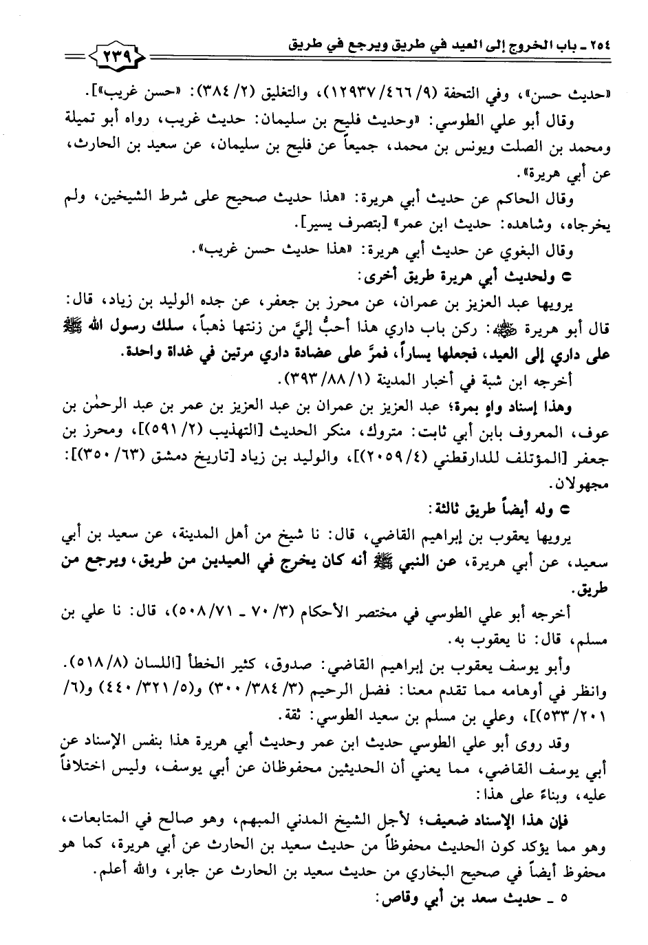 وقال أبو علي الطوسي: "وحديث فليح بن سليمان: حديث غريب، رواه أبو تميلة ومحمد بن الصلت ويونس بن محمد، جميعًا عن فليح بن سليمان، عن سعيد بن الحارث، عن أبي هريرة".