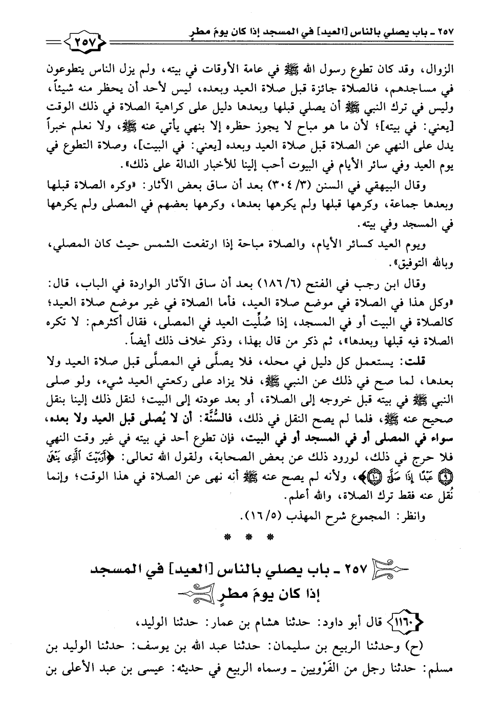 ٢٥٧ - باب يصلي بالناس [العيد] في المسجد إذا كان يومَ مطرٍ