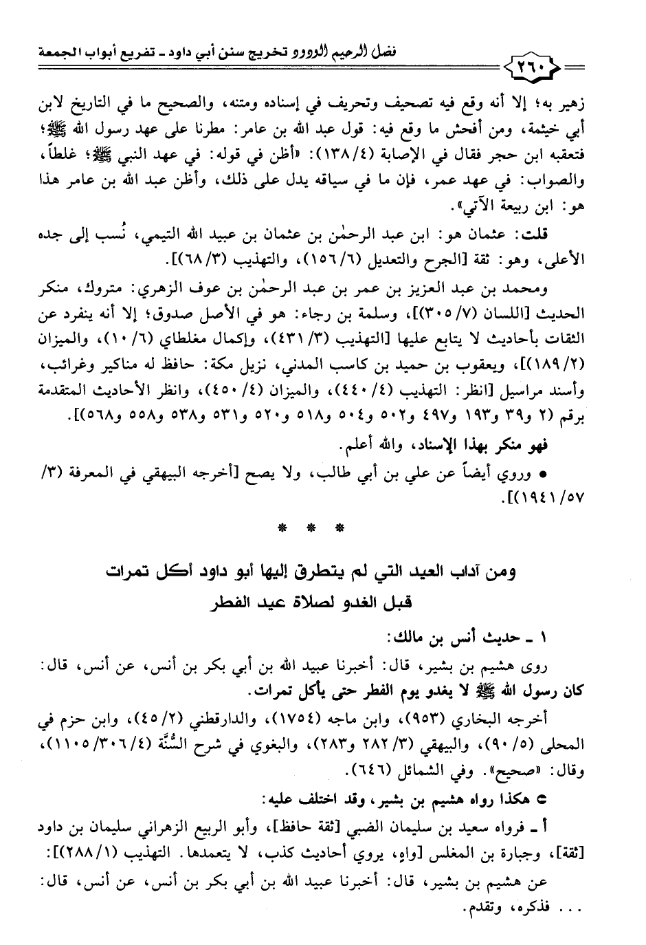 ومن آداب العيد التي لم يتطرق إليها أبو داود أكل تمرات قبل الغدو لصلاة عيد الفطر