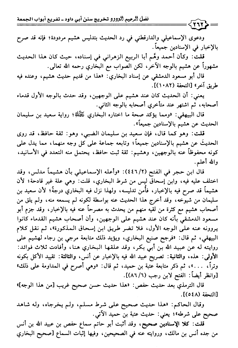 ودعوى الإسماعيلي والدارقطني في رد الحديث بتدليس هشيم مردودة؛ فإنه قد صرح بالإخبار في الإسنادين جميعًا.