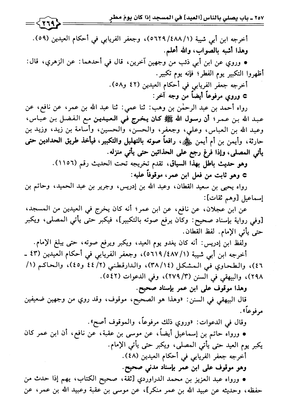 أخرجه ابن أبي شيبة (١/ ٤٨٧/ ٥٦١٩)، وجعفر الفريابي في أحكام العيدين (٤٣ - ٤٦)، والطحاوي في المشكل (١٤/ ٣٨)، والدارقطني (٢/ ٤٤ و ٤٥)، والحاكم (١/ ٢٩٨)، والبيهقي في السنن (٣/ ٢٧٩)، وفي الدعوات (٥٤٢).