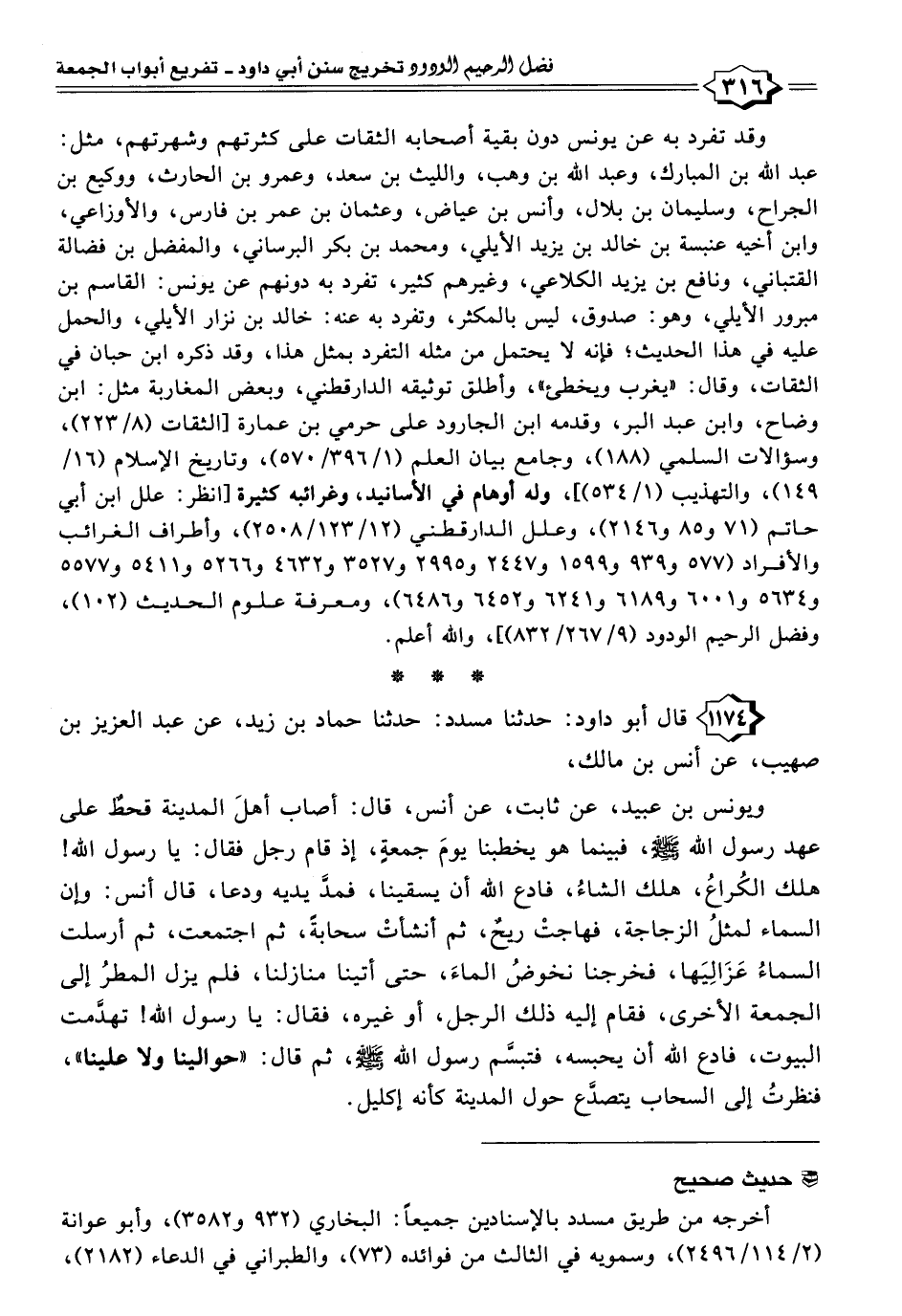 ١١٧٤ - قال أبو داود: حدثنا مسدد: حدثنا حماد بن زيد، عن عبد العزيز بن صهيب، عن أنس بن مالك،