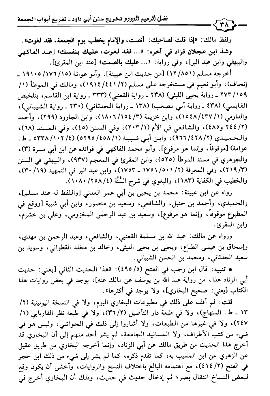 ولفظ مالك: "إذا قلت لصاحبك: أنصت، والإمام يخطب يوم الجمعة، فقد لغوت".