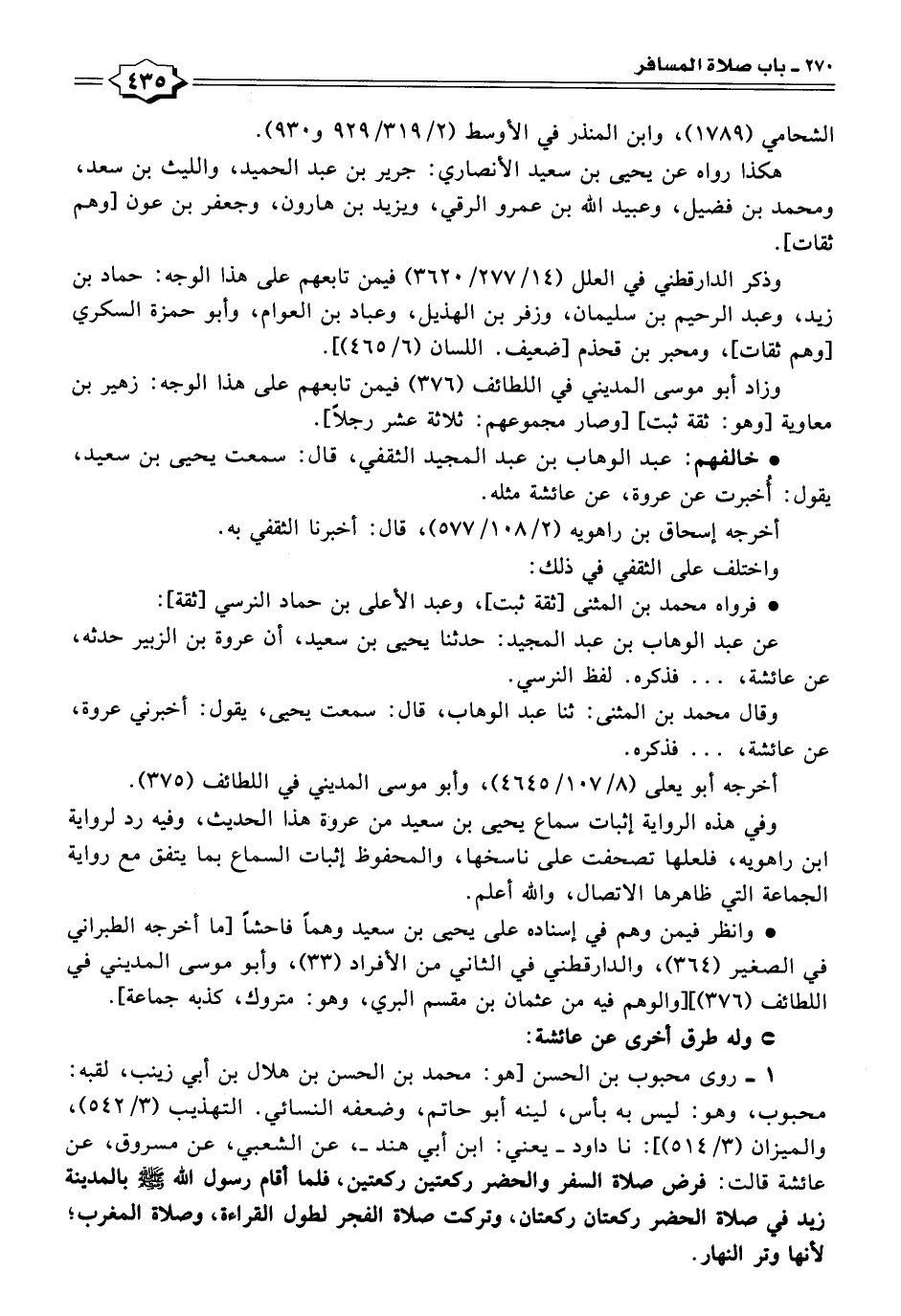 وذكر الدارقطني في العلل (١٤/ ٢٧٧/ ٣٦٢٠) فيمن تابعهم على هذا الوجه: حماد بن زيد، وعبد الرحيم بن سليمان، وزفر بن الهذيل، وعباد بن العوام، وأبو حمزة السكري [وهم ثقات]، ومحبر بن قحذم [ضعيف. اللسان (٦/ ٤٦٥)].