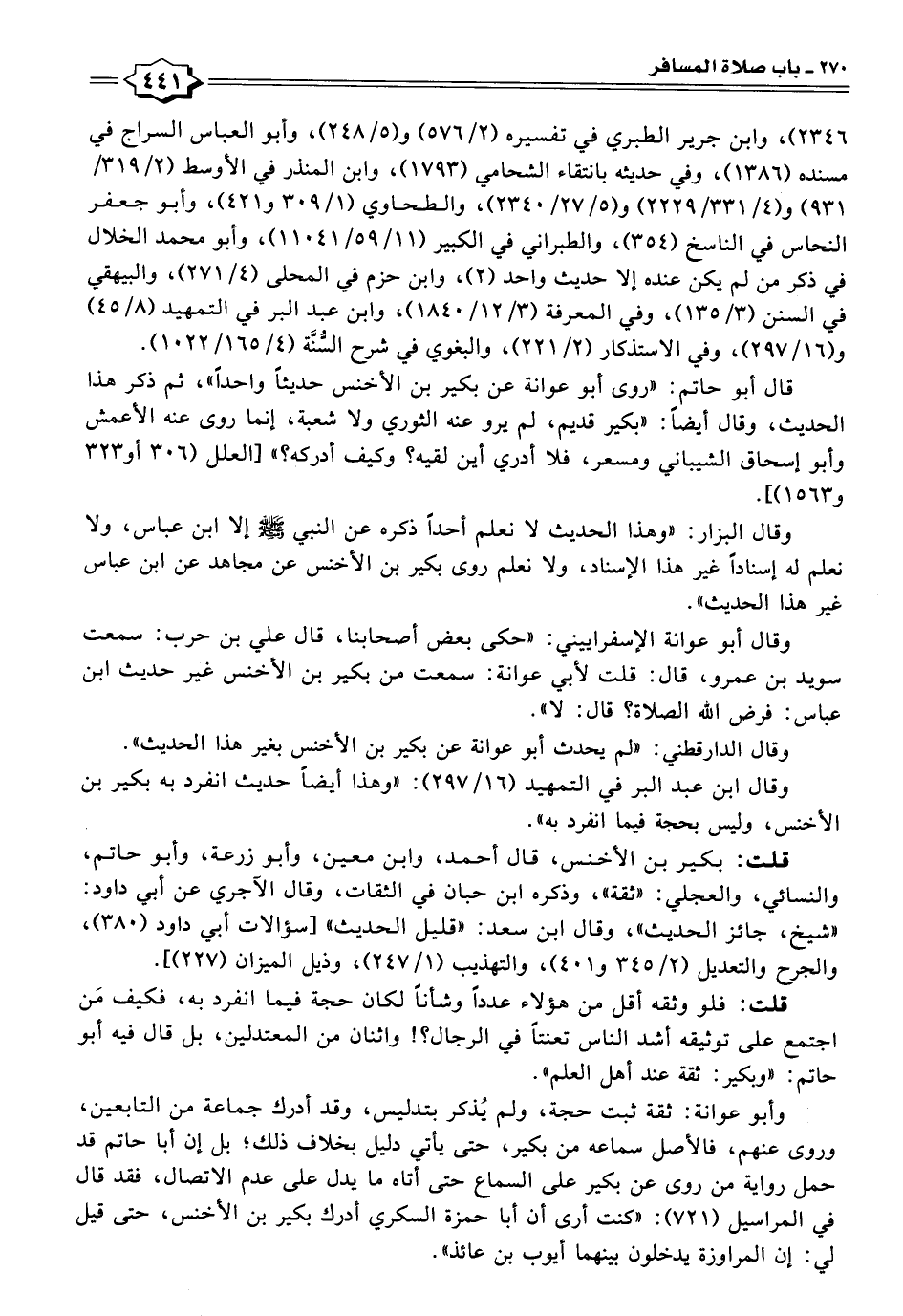 ٢٣٤٦)، وابن جرير الطبري في تفسيره (٢/ ٥٧٦) و (٥/ ٢٤٨)، وأبو العباس السراج في مسنده (١٣٨٦)، وفي حديثه بانتقاء الشحامي (١٧٩٣)، وابن المنذر في الأوسط (٢/ ٣١٩/ ٩٣١) و (٤/ ٣٣١/ ٢٢٢٩) و (٥/ ٢٧/ ٢٣٤٠)، والطحاوي (١/ ٣٠٩ و ٤٢١)، وأبو جعفر النحاس في الناسخ (٣٥٤)، والطبراني في الكبير (١١/ ٥٩/ ١١٠٤١)، وأبو محمد الخلال في ذكر من لم يكن عنده إلا حديث واحد (٢)، وابن حزم في المحلى (٤/ ٢٧١)، والبيهقي في السنن (٣/ ١٣٥)، وفي المعرفة (٣/ ١٢/ ١٨٤٠)، وابن عبد البر في التمهيد (٨/ ٤٥) و (١٦/ ٢٩٧)، وفي الاستذكار (٢/ ٢٢١)، والبغوي في شرح السُّنَّة (٤/ ١٦٥/ ١٠٢٢).