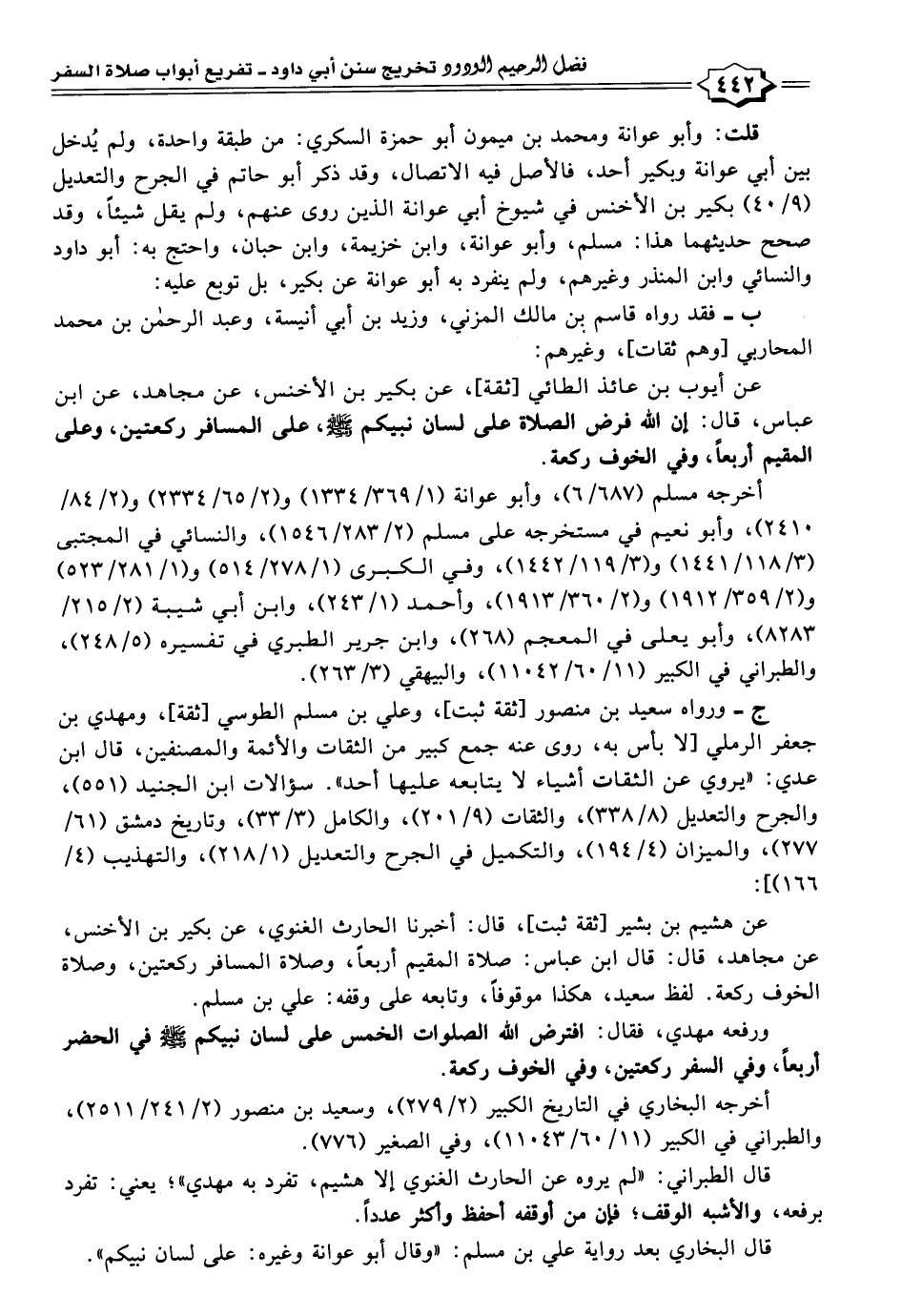 ورفعه مهدي، فقال: افترض اللَّه الصلوات الخمس على لسان نبيكم -صلى اللَّه عليه وسلم- في الحضر أربعًا، وفي السفر ركعتين، وفي الخوف ركعة.