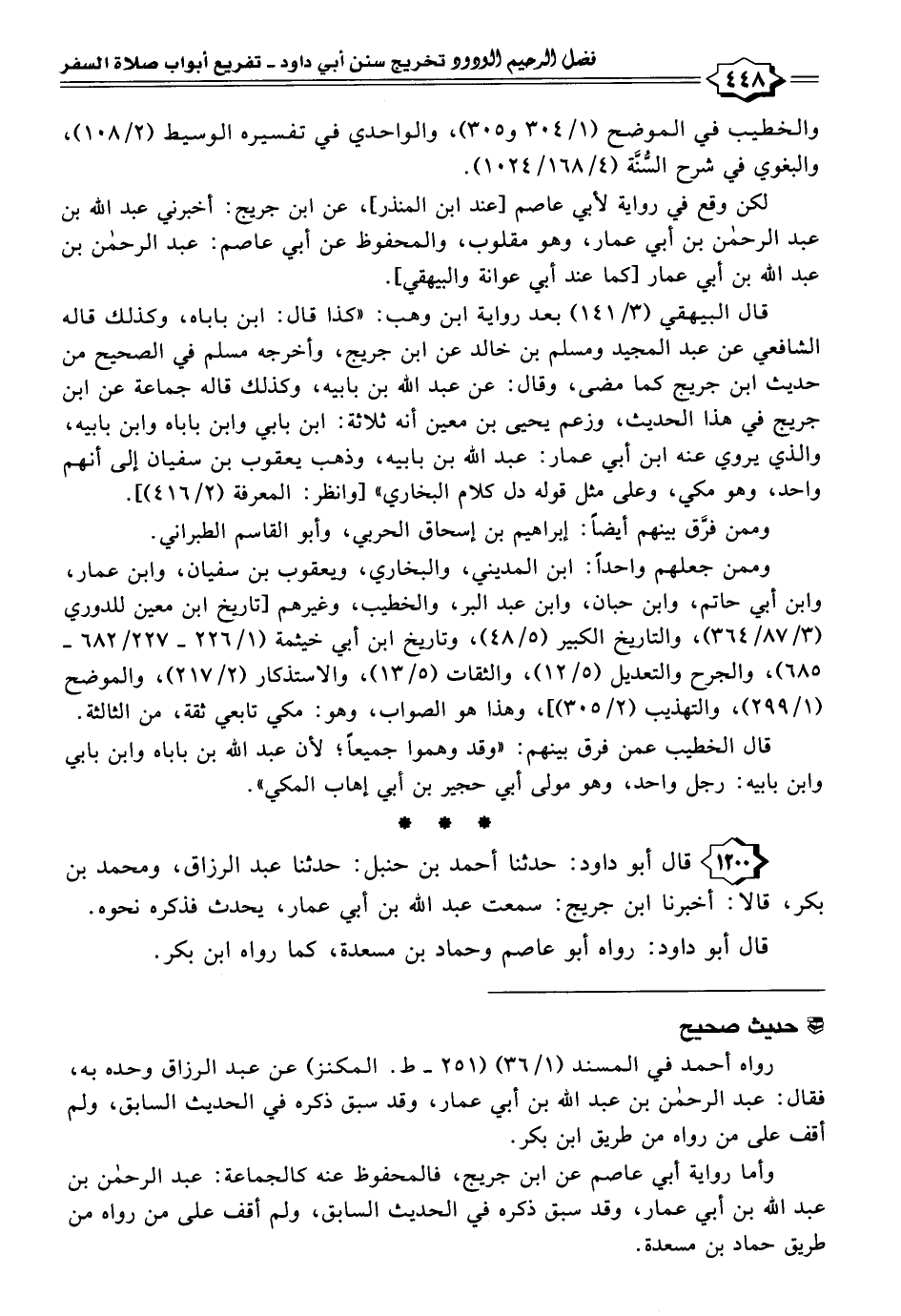 ١٢٠٠ - قال أبو داود: حدثنا أحمد بن حنبل: حدثنا عبد الرزاق، ومحمد بن بكر، قالا: أخبرنا ابن جريج: سمعت عبد اللَّه بن أبي عمار، يحدث فذكره نحوه.