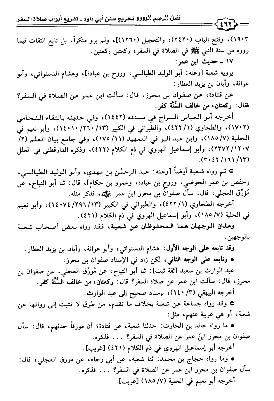 • وما رواه حجاج بن محمد: ثنا شعبة، عن أبي رجاء، عن مورق العجلي، قال: سأل صفوان بن محرز ابن عمر عن الصلاة في السفر؟. . . فذكره.
