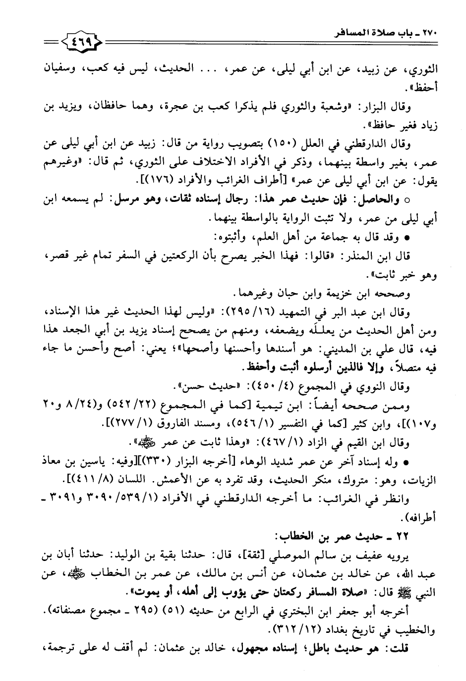 والحاصل: فإن حديث عمر هذا: رجال إسناده ثقات، وهو مرسل: لم يسمعه ابن أبي ليلى من عمر، ولا تثبت الرواية بالواسطة بينهما.