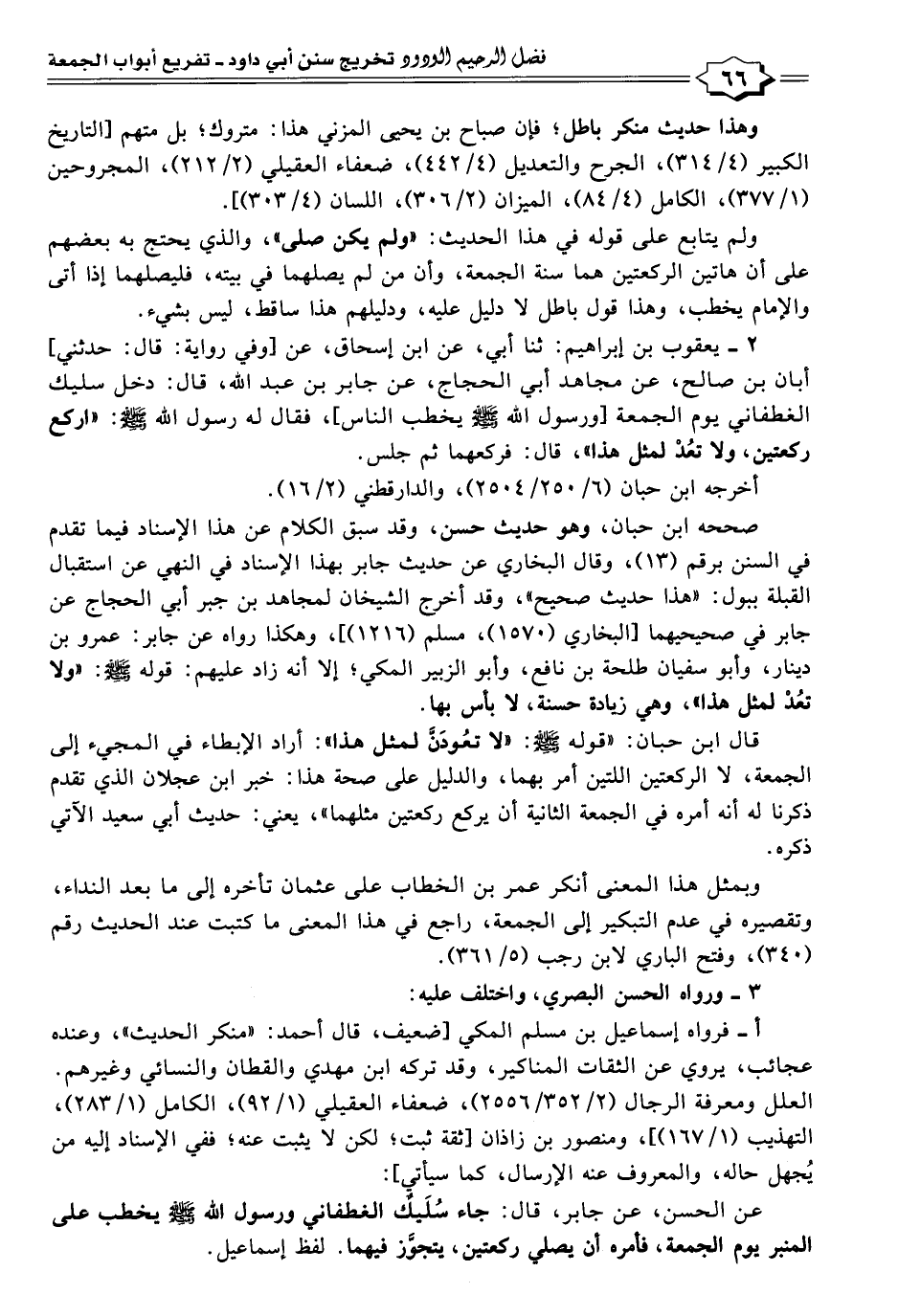 وبمثل هذا المعنى أنكر عمر بن الخطاب على عثمان تأخره إلى ما بعد النداء، وتقصيره في عدم التبكير إلى الجمعة، راجع في هذا المعنى ما كتبت عند الحديث رقم (٣٤٠)، وفتح الباري لابن رجب (٥/ ٣٦١).