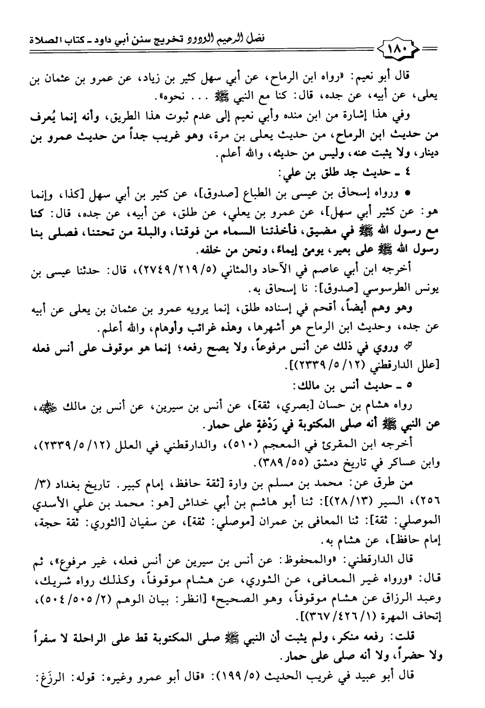 قلت: رفعه منكر، ولم يثبت أن النبي -صَلَّى اللهُ عَلَيْهِ وَسَلَّمَ- صلى المكتوبة قط على الراحلة لا سفرًا ولا حضرًا، ولا أنه صلى على حمار.