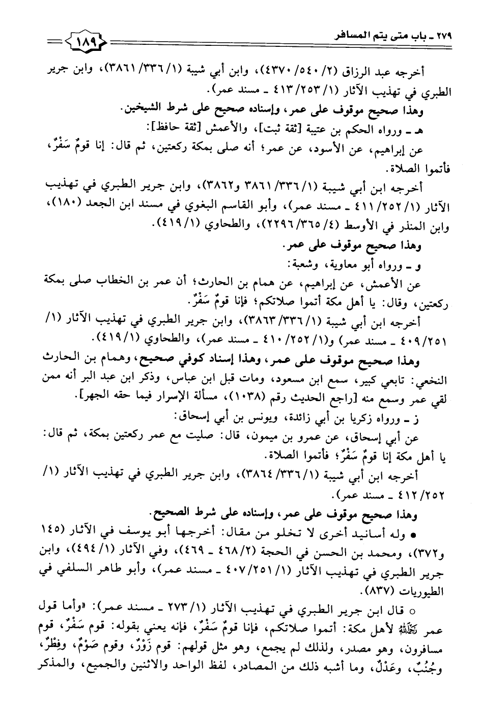° قال ابن جرير الطبري في تهذيب الآثار (١/ ٢٧٣ - مسند عمر): "وأما قول عمر -رَحِمَهُ اللهُ- لأهل مكة: أتموا صلاتكم، فإنا قومٌ سَفْرٌ، فإنه يعني بقوله: قوم سَفْرٌ، قوم مسافرون، وهو مصدر، ولذلك لم يجمع، وهو مثل قولهم: قوم زَوْرٌ، وقوم صَوْمٌ، وفِطْرٌ، وجُنُبٌ، وعَدْلٌ، وما أشبه ذلك من المصادر، لفظ الواحد والاثنين والجميع، والمذكر