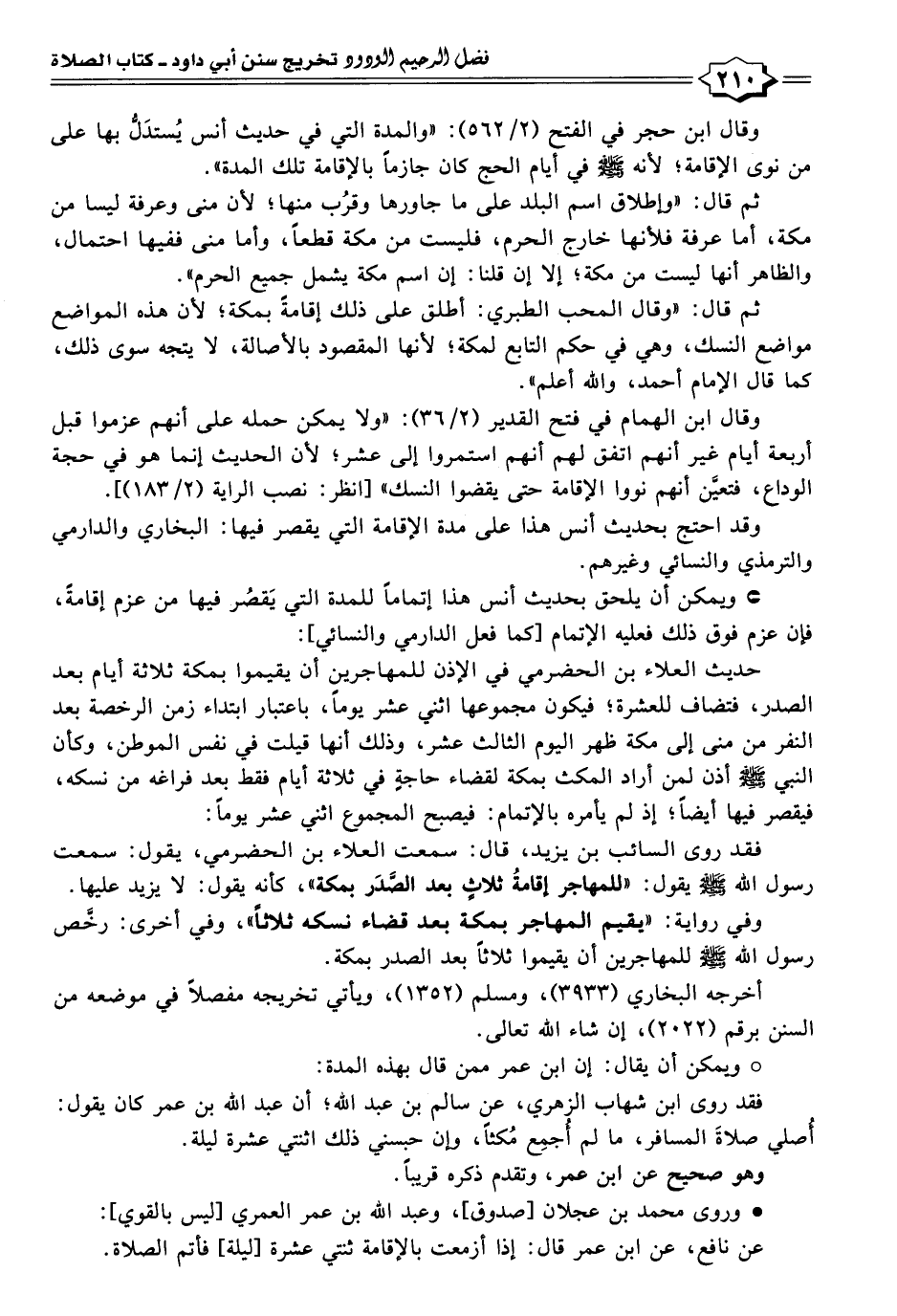 • ويمكن أن يلحق بحديث أنس هذا إتمامًا للمدة التي يَقصُر فيها من عزم إقامةً، فإن عزم فوق ذلك فعليه الإتمام [كما فعل الدارمي والنسائي]: