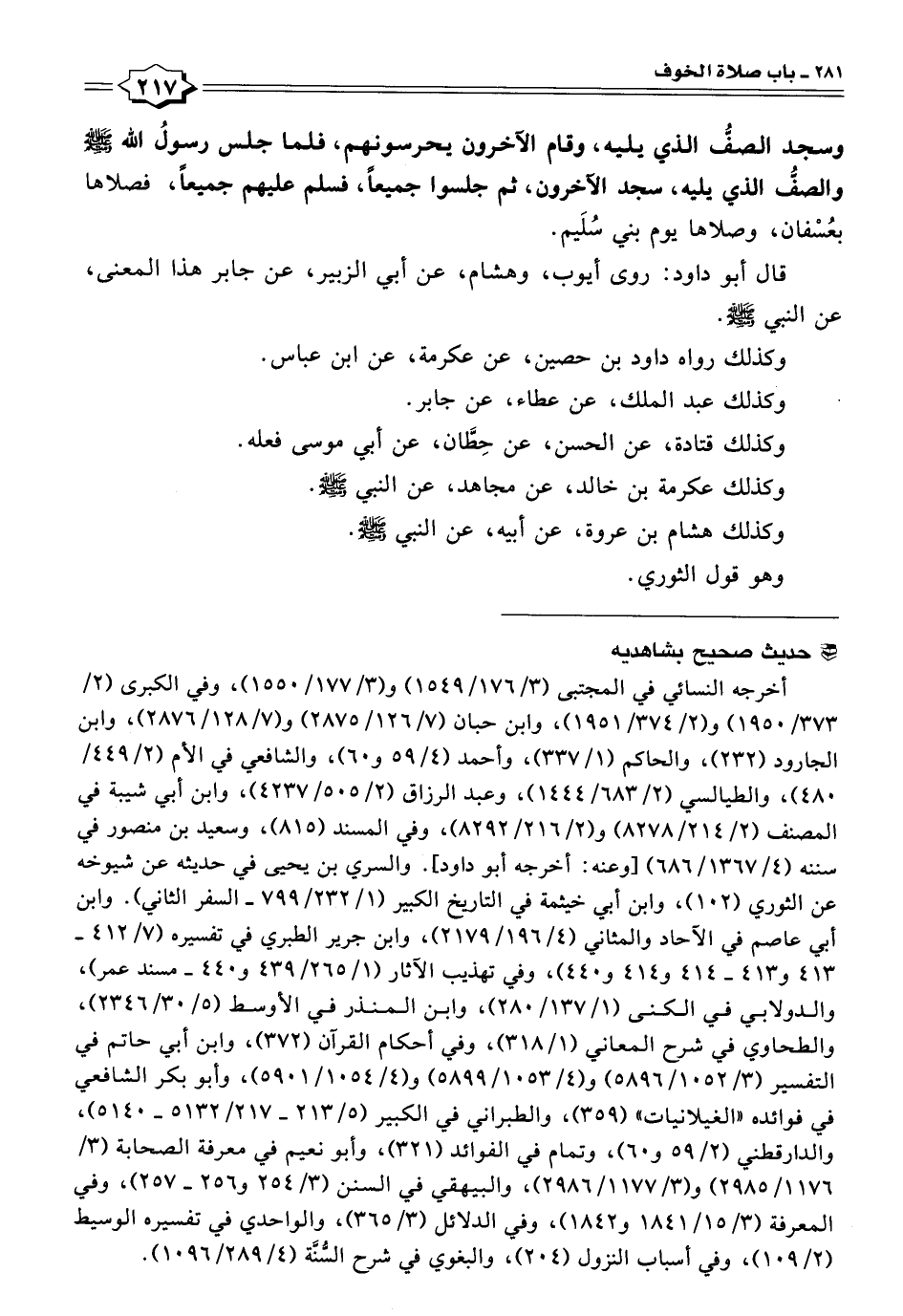 وسجد الصفُّ الذي يليه، وقام الآخرون يحرسونهم، فلما جلس رسولُ الله -صَلَّى اللهُ عَلَيْهِ وَسَلَّمَ- والصفُّ الذي يليه، سجد الآخرون، ثم جلسوا جميعًا، فسلم عليهم جميعًا، فصلاها بعُسْفان، وصلاها يوم بني سُلَيم.