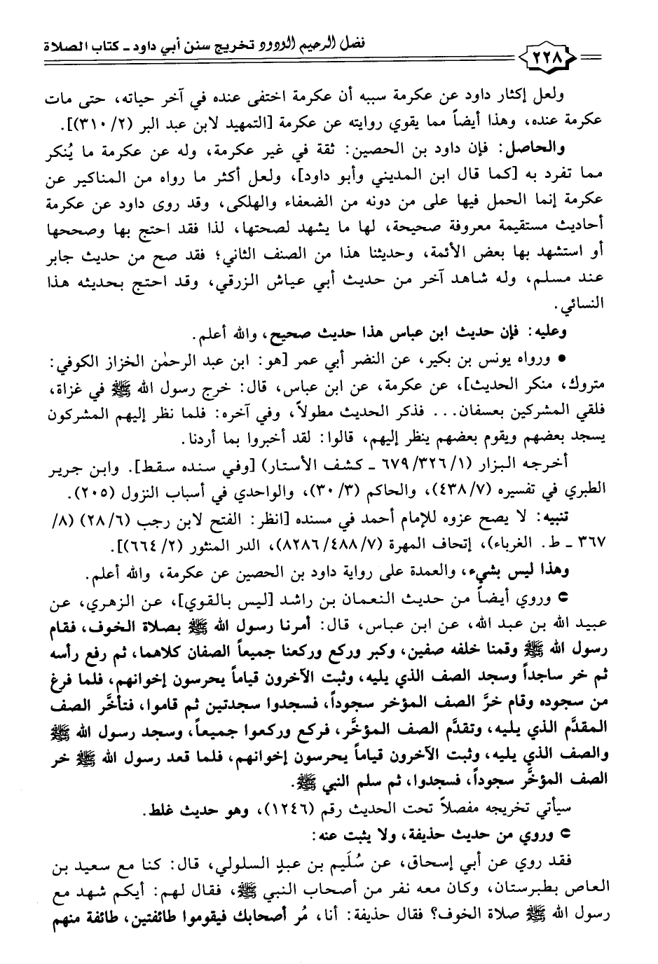 والحاصل: فإن داود بن الحصين: ثقة في غير عكرمة، وله عن عكرمة ما يُنكر مما تفرد به [كما قال ابن المديني وأبو داود]، ولعل أكثر ما رواه من المناكير عن عكرمة إنما الحمل فيها على من دونه من الضعفاء والهلكى، وقد روى داود عن عكرمة أحاديث مستقيمة معروفة صحيحة، لها ما يشهد لصحتها، لذا فقد احتج بها وصححها أو استشهد بها بعض الأئمة، وحديثنا هذا من الصنف الثاني؛ فقد صح من حديث جابر عند مسلم، وله شاهد آخر من حديث أبي عياش الزرقي، وقد احتج بحديثه هذا النسائي.