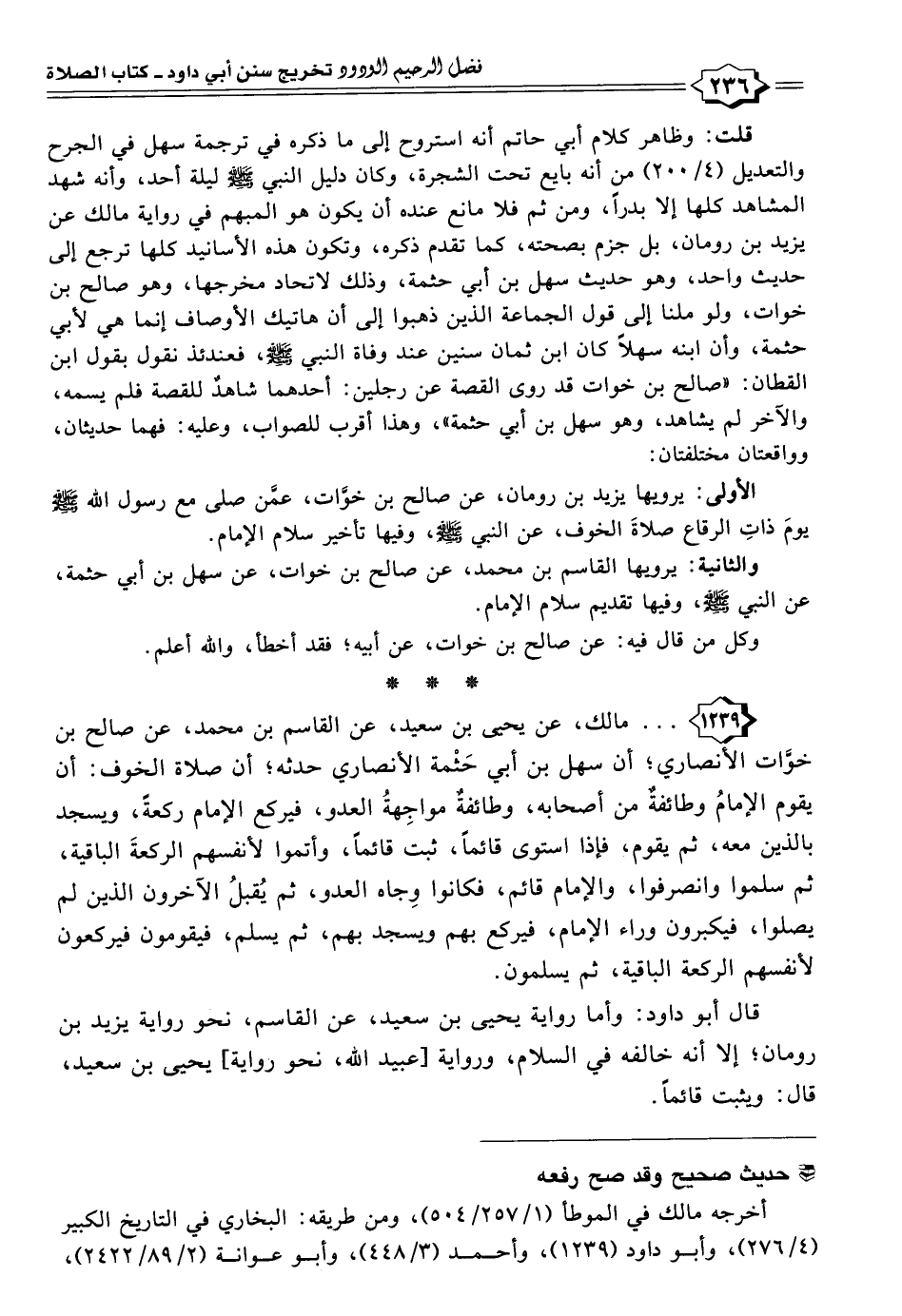 أخرجه مالك في الموطأ (١/ ٢٥٧/ ٥٠٤)، ومن طريقه: البخاري في التاريخ الكبير (٤/ ٢٧٦)، وأبو داود (١٢٣٩)، وأحمد (٣/ ٤٤٨)، وأبو عوانة (٢/ ٨٩/ ٢٤٢٢)،