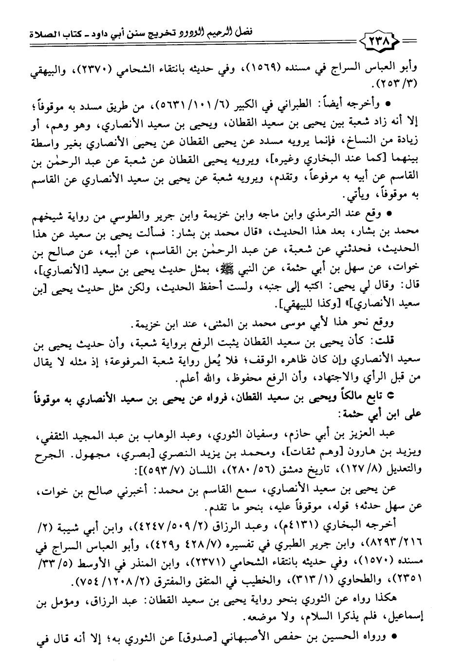 • وأخرجه أيضًا: الطبراني في الكبير (٦/ ١٠١/ ٥٦٣١)، من طريق مسدد به موقوفًا؛ إلا أنه زاد شعبة بين يحيى بن سعيد القطان، ويحيى بن سعيد الأنصاري، وهو وهم، أو زيادة من النساخ، فإنما يرويه مسدد عن يحيى القطان عن يحيى الأنصاري بغير واسطة بينهما [كما عند البخاري وغيره]، ويرويه يحيى القطان عن شعبة عن عبد الرحمن بن القاسم عن أبيه به مرفوعًا، وتقدم، ويرويه شعبة عن يحيى بن سعيد الأنصاري عن القاسم به موقوفًا، ويأتي.