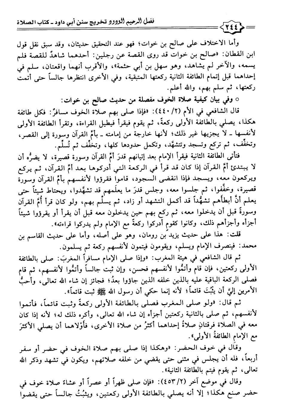 ° وفي بيان كيفية صلاة الخوف مفصلة من حديث صالح بن خوات: