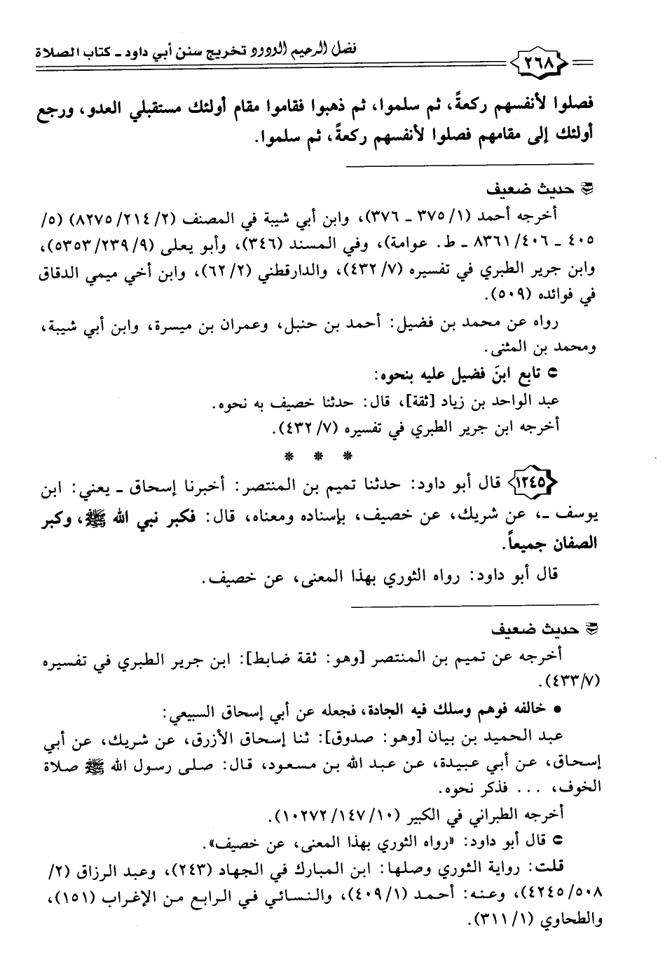 ١٢٤٥ - قال أبو داود: حدثنا تميم بن المنتصر: أخبرنا إسحاق - يعني: ابن يوسف -، عن شريك، عن خصيف، بإسناده ومعناه، قال: فكبر في الله - صلى الله عليه وسلم -، وكبر الصفان جميعًا.