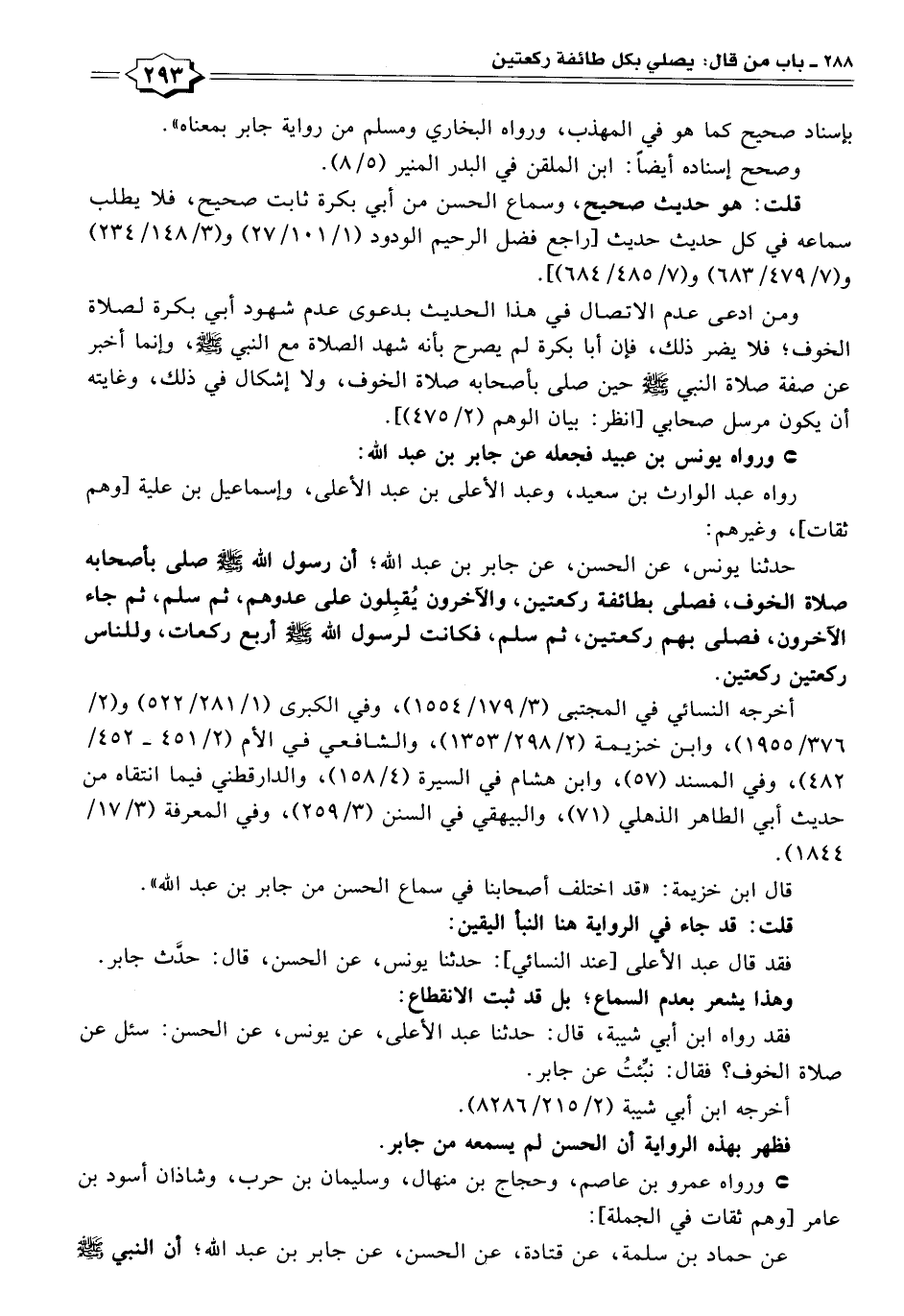 ومن ادعى عدم الاتصال في هذا الحديث بدعوى عدم شهود أبي بكرة لصلاة الخوف؛ فلا يضر ذلك، فإن أبا بكرة لم يصرح بأنه شهد الصلاة مع النبي - صلى الله عليه وسلم -، وإنما أخبر عن صفة صلاة النبي - صلى الله عليه وسلم - حين صلى بأصحابه صلاة الخوف، ولا إشكال في ذلك، وغايته أن يكون مرسل صحابي [انظر: بيان الوهم (٢/ ٤٧٥)].