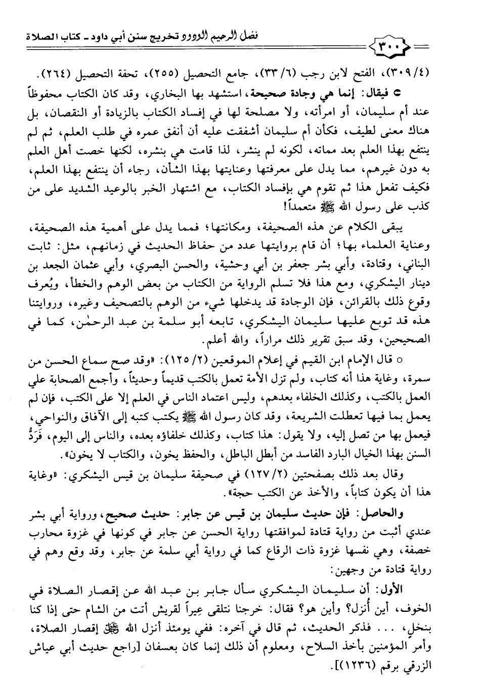 * قال الإمام ابن القيم في إعلام الموقعين (٢/ ١٢٥):" وقد صح سماع الحسن من سمرة، وغاية هذا أنه كتاب، ولم تزل الأمة تعمل بالكتب قديمًا وحديثًا، وأجمع الصحابة علي العمل بالكتب، وكذلك الخلفاء بعدهم، وليس اعتماد الناس في العلم إلا على الكتب، فإن لم يعمل بما فيها تعطلت الشريعة، وقد كان رسول الله - صلى الله عليه وسلم - يكتب كتبه إلى الآفاق والنواحي، فيعمل بها من تصل إليه، ولا يقول: هذا كتاب، وكذلك خلفاؤه بعده، والناس إلى اليوم، فَرَدُّ السنن بهذا الخيال البارد الفاسد من أبطل الباطل، والحفظ يخون، والكتاب لا يخون".