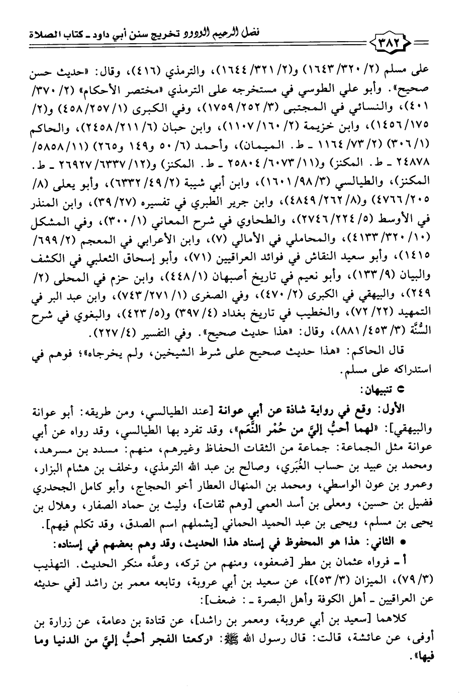 الأول: وقع في رواية شاذة عن أبى عوانة [عند الطيالسي، ومن طريقه: أبو عوانة والبيهقي]: "لهما أحبُّ إليَّ من حُمْر النَّعَم"، وقد تفرد بها الطيالسي، وقد رواه عن أبى عوانة مثل الجماعة: جماعة من الثقات الحفاظ وغيرهم، منهم: مسدد بن مسرهد، ومحمد بن عبيد بن حساب الغُبَري، وصالح بن عبد الله الترمذي، وخلف بن هشام البزار، وعمرو بن عون الواسطي، ومحمد بن المنهال العطار أخو الحجاج، وأبو كامل الجحدري فضيل بن حسين، ومعلى بن أسد العمي [وهم ثقات]، وليث بن حماد الصفار، وهلال بن يحيى بن مسلم، ويحيى بن عبد الحميد الحماني [يشملهم اسم الصدق، وقد تكلم فيهم].