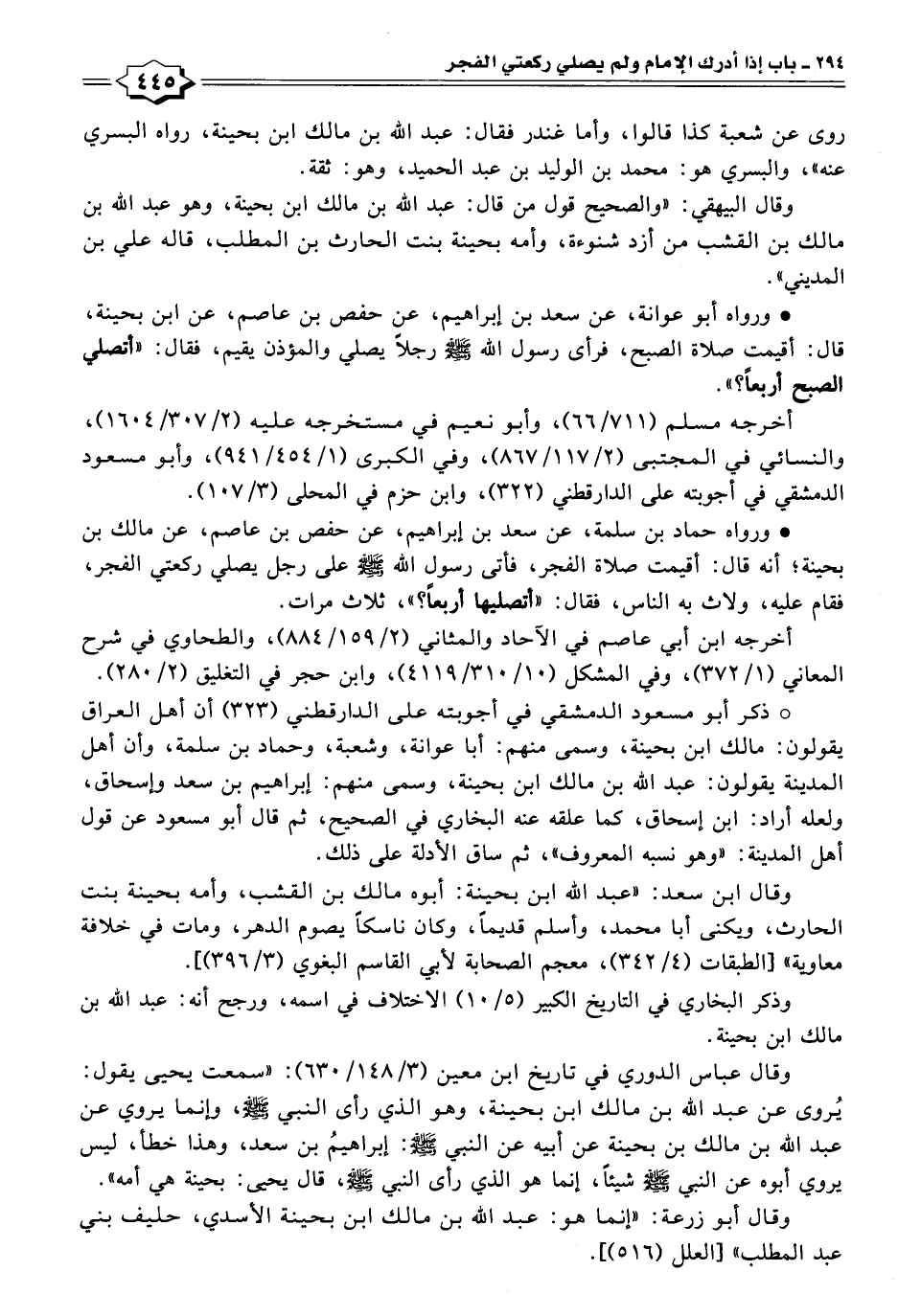 * ورواه أبو عوانة، عن سعد بن إبراهيم، عن حفص بن عاصم، عن ابن بحينة، قال: أقيمت صلاة الصبح، فرأى رسول الله - صلى الله عليه وسلم - رجلًا يصلي والمؤذن يقيم، فقال: "أتصلي الصبح أربعًا؟ ".
