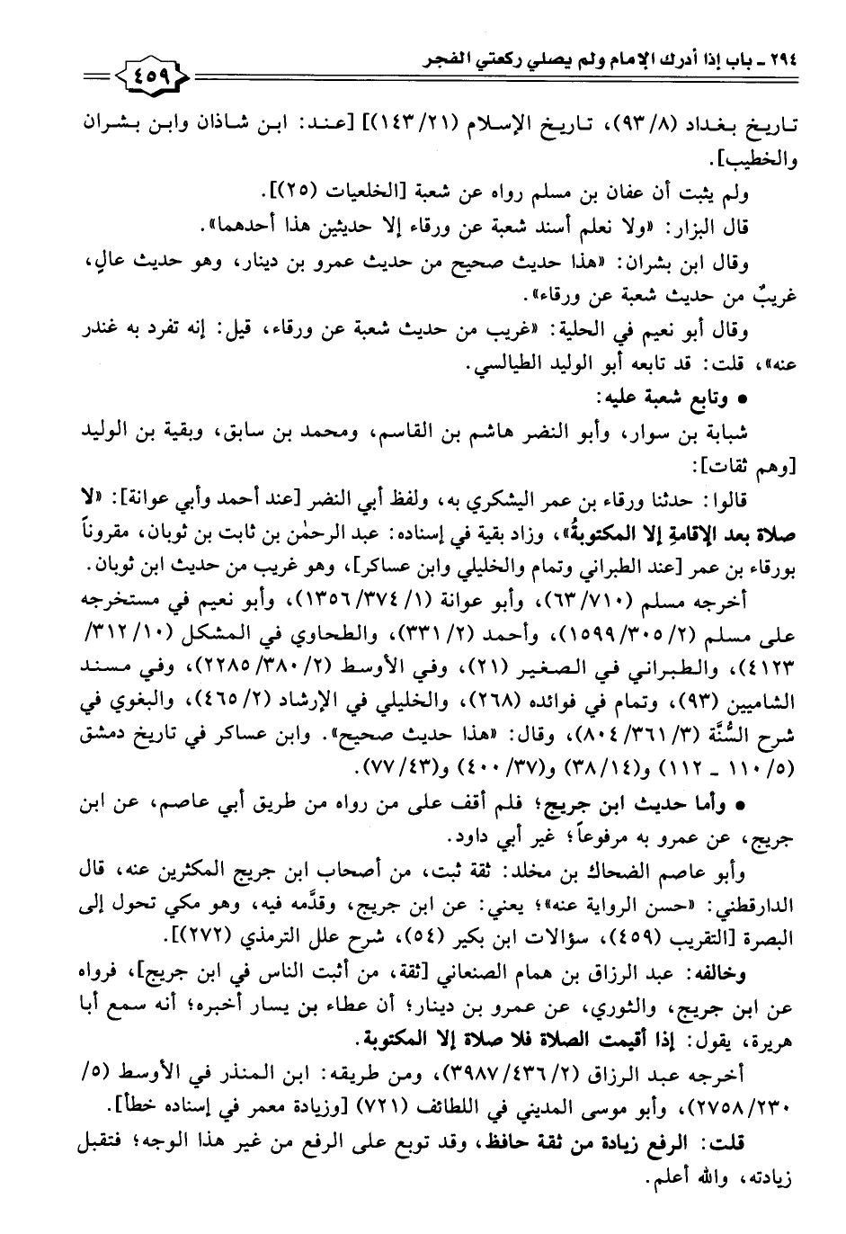 قالوا: حدثنا ورقاء بن عمر اليشكري به، ولفظ أبي النضر [عند أحمد وأبي عوانة]: "لا صلاة بعد الإقامةِ إلا المكتوبةُ"، وزاد بقية في إسناده: عبد الرحمن بن ثابت بن ثوبان، مقرونًا بورقاء بن عمر [عند الطبراني وتمام والخليلي وابن عساكر]، وهو غريب من حديث ابن ثوبان.