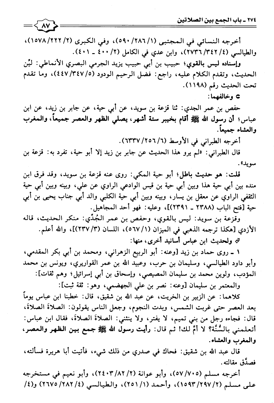 حفص بن عمر الجدي: ثنا قزعة بن سويد، عن أبي حية، عن جابر بن زيد، عن ابن عباس؛ أن رسول الله -صَلَّى اللهُ عَلَيْهِ وَسَلَّمَ- أقام بخيبر ستة أشهر، يصلي الظهر والعصر جميعًا، والمغرب والعشاء جميعًا.