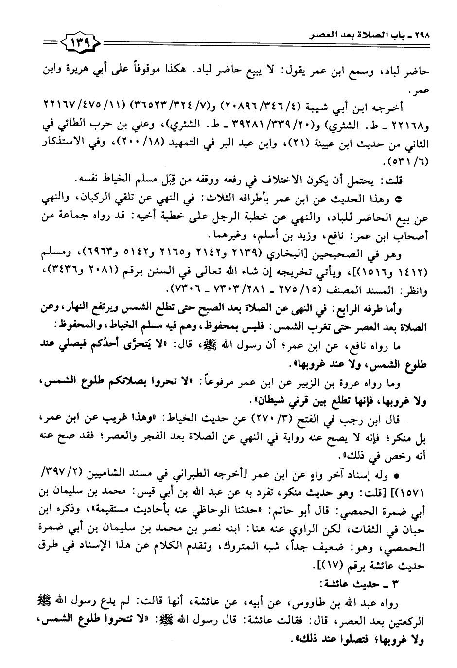 وأما طرفه الرابع: في النهى عن الصلاة بعد الصبح حتى تطلع الشمس ويرتفع النهار، وعن الصلاة بعد العصر حتى تغرب الشمس: فليس بمحفوظ، وهم فيه مسلم الخياط، والمحفوظ: