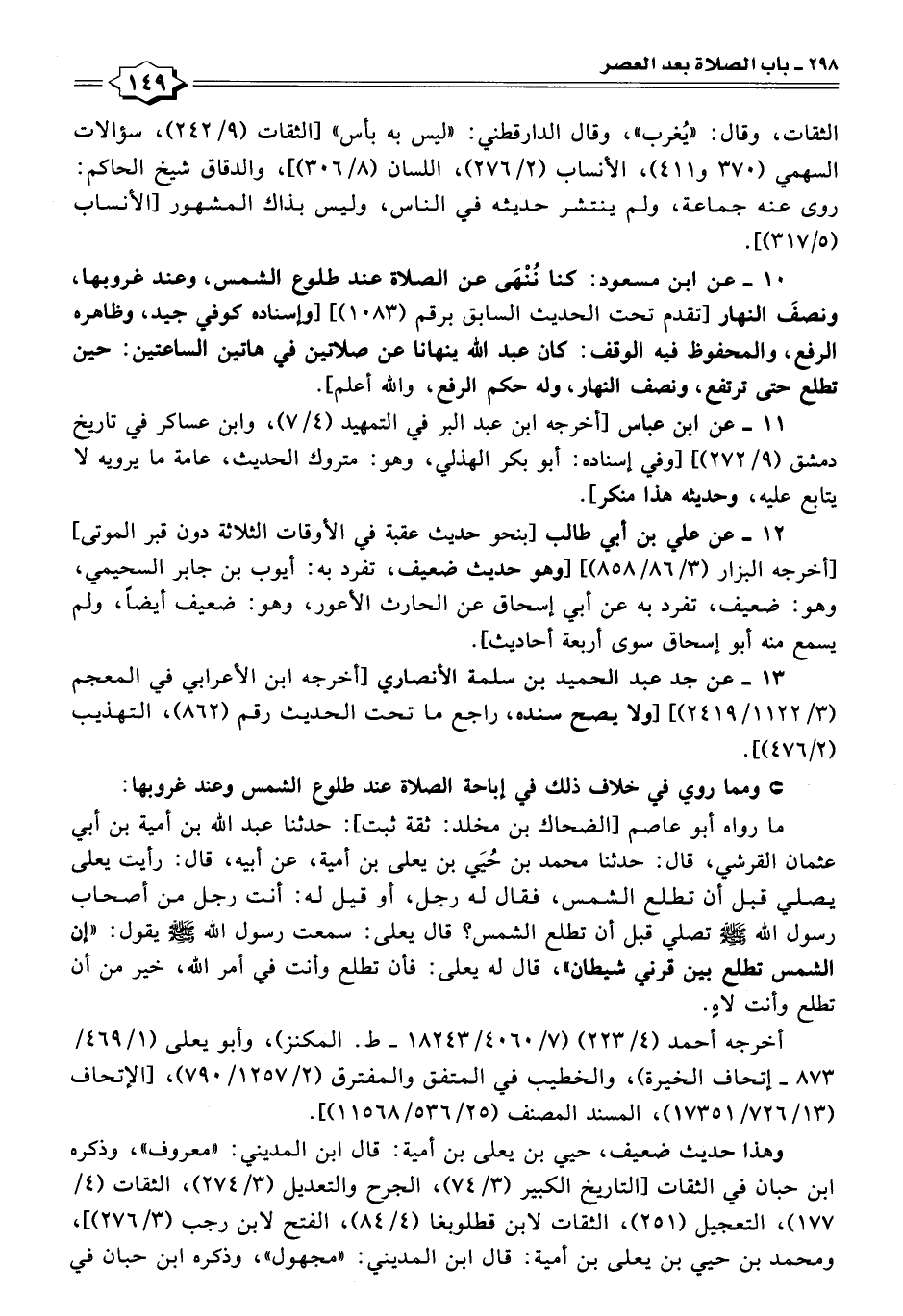 ١٠ - عن ابن مسعود: كنا نُنْهَى عن الصلاة عند طلوع الشمس، وعند غروبها، ونصفَ النهار [تقدم تحت الحديث السابق برقم (١٠٨٣)] [وإسناده كوفي جيد، وظاهره الرفع، والمحفوظ فيه الوقف: كان عبد الله ينهانا عن صلاتين في هاتين الساعتين: حين تطلع حتى ترتفع، ونصف النهار، وله حكم الرفع، والله أعلم].