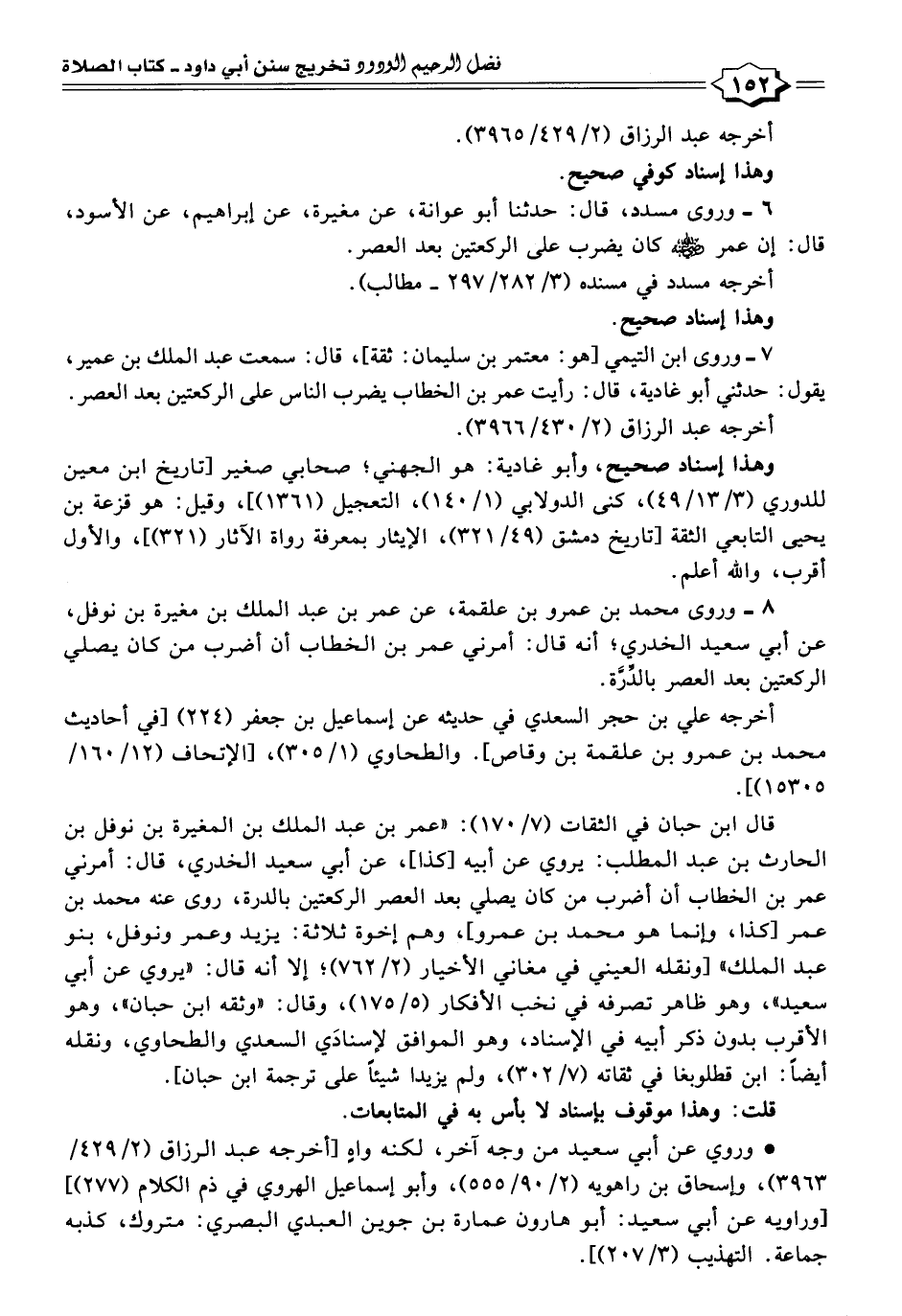 ٨ - وروى محمد بن عمرو بن علقمة، عن عمر بن عبد الملك بن مغيرة بن نوفل، عن أبي سعيد الخدري؛ أنه قال: أمرني عمر بن الخطاب أن أضرب من كان يصلي الركعتين بعد العصر بالدِّرَّة.