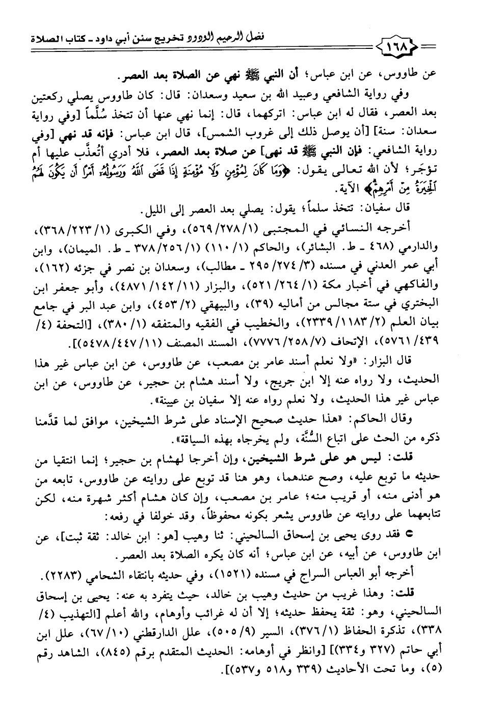 * فقد روى يحيى بن إسحاق السالحيني: ثنا وهيب [هو: ابن خالد: ثقة ثبت]، عن ابن طاووس، عن أبيه، عن ابن عباس؛ أنه كان يكره الصلاة بعد العصر.