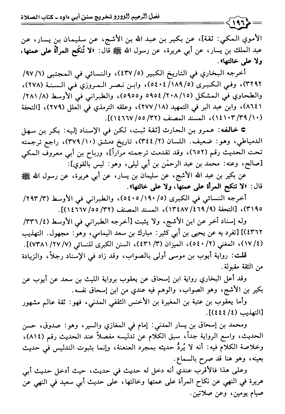 وعلى هذا فالأقرب عندي أنه دخل له حديث في حديث، حيث أدخل حديث أبي هريرة في النهي عن نكاح المرأة على عمتها وخالتها، على حديث أبي سعيد في النهي عن صيام يومين، وعن صلاتين.