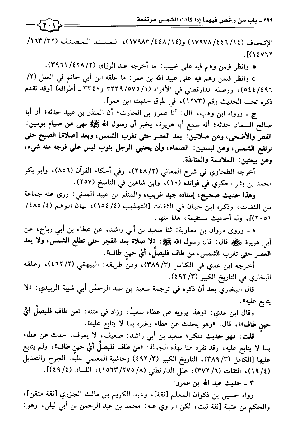 د - وروى مروان بن معاوية: ثنا سعيد بن أبي راشد، عن عطاء بن أبي رباح، عن أبي هريرة - رضي الله عنه - قال: قال رسول الله - صلى الله عليه وسلم -: "لا صلاة بعد الفجر حتى تطلع الشمس، ولا بعد العصر حتى تغرب الشمس، من طاف فليصلِّ، أيَّ حينٍ طاف".