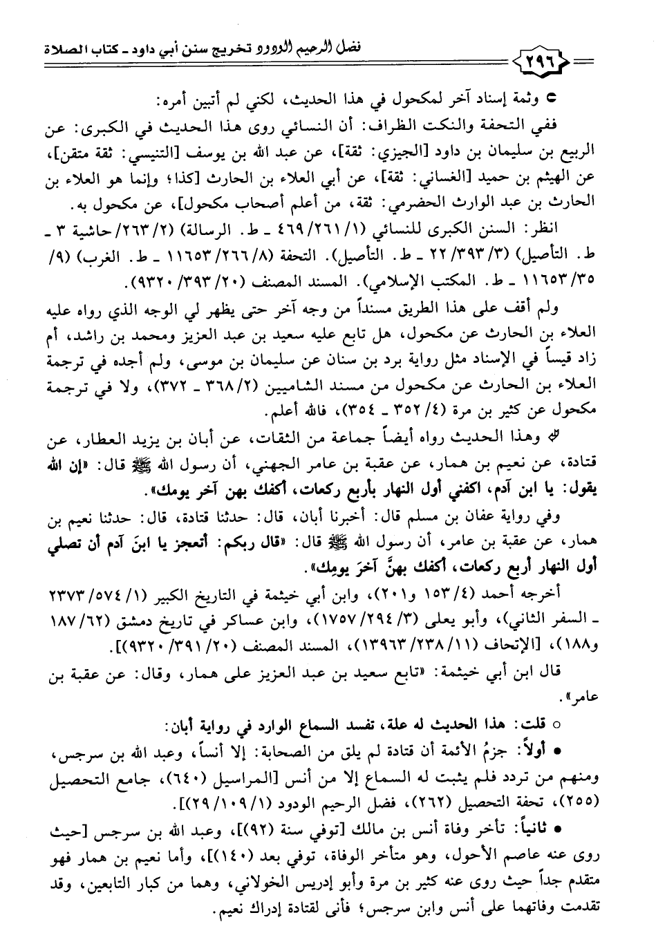 وهذا الحديث رواه أيضًا جماعة من الثقات، عن أبان بن يزيد العطار، عن قتادة، عن نعيم بن همار، عن عقبة بن عامر الجهني، أن رسول الله - صلى الله عليه وسلم - قال: "إن الله يقول: يا ابن آدم، اكفني أول النهار بأربع ركعات، أكفك بهن آخر يومك".