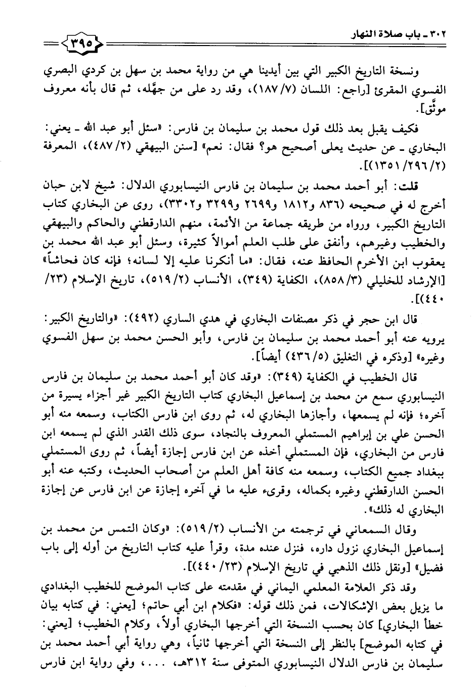 ونسخة التاريخ الكبير التي بين أيدينا هي من رواية محمد بن سهل بن كردي البصري الفسوي المقرئ [راجع: اللسان (٧/ ١٨٧)، وقد رد على من جهَّله، ثم قال بأنه معروف موثَّق].
