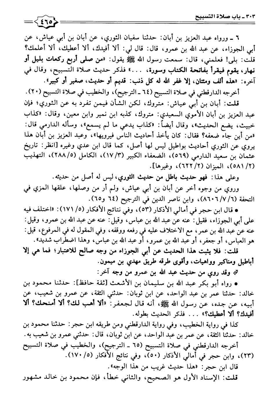 أخرجه الدارقطني في صلاة التسبيح (٦٥ - الترجيح)، والخطيب في صلاة التسبيح (٢٣)، وابن حجر في أمالي الأذكار (٥٠)، وفي نتائج الأفكار (٥/ ١٧٠).