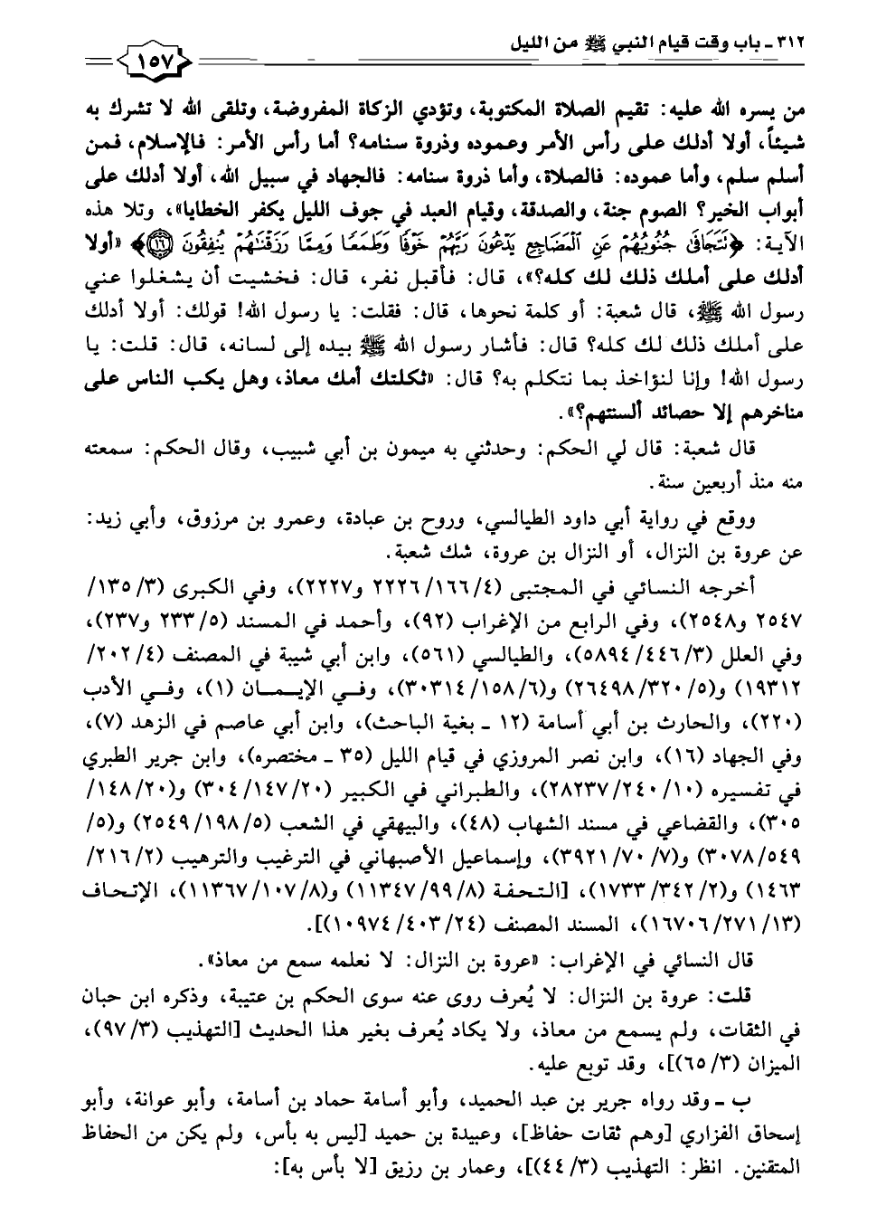 أخرجه النسائي في المجتبى (٤/ ١٦٦ / ٢٢٢٦ و ٢٢٢٧)، وفي الكبرى (٣/ ١٣٥/ ٢٥٤٧ و ٢٥٤٨)، وفي الرابع من الإغراب (٩٢)، وأحمد في المسند (٥/ ٢٣٣ و ٢٣٧)، وفي العلل (٣/ ٤٤٦ /٥٨٩٤)، والطيالسي (٥٦١)، وابن أبي شيبة في المصنف (٤/ ٢٥٢/ ١٩٣١٢) و (٥/ ٣٢٠/ ٢٦٤٩٨) و (٦/ ١٥٨/ ٣٠٣١٤)، وفي الإيمان (١)، وفي الأدب (٢٢٠)، والحارث بن أبي أسامة (١٢ - بغية الباحث)، وابن أبي عاصم في الزهد (٧)، وفي الجهاد (١٦)، وابن نصر المروزي في قيام الليل (٣٥ - مختصره)، وابن جرير الطبري في تفسيره (١٠/ ٢٤٠/ ٢٨٢٣٧)، والطبراني في الكبير (٢٠/ ١٤٧/ ٣٠٤) و (٢٠/ ١٤٨/ ٣٠٥)، والقضاعي في مسند الشهاب (٤٨)، والبيهقي في الشعب (٥/ ١٩٨/ ٢٥٤٩) و (٥/ ٥٤٩/ ٣٠٧٨) و (٧/ ٧٠/ ٣٩٢١)، وإسماعيل الأصبهاني في التركيب والترهيب (٢/ ٢١٦/ ١٤٦٣) و (٢/ ٣٤٢/ ١٧٣٣)، [التحفة (٨/ ٩٩/ ١١٣٤٧) و (٨/ ١٠٧/ ١١٣٦٧)، الإتحاف (١٣/ ٢٧١/ ١٦٧٠٦)، المسند المصنف (٢٤/ ٤٠٣/ ١٠٩٧٤)].