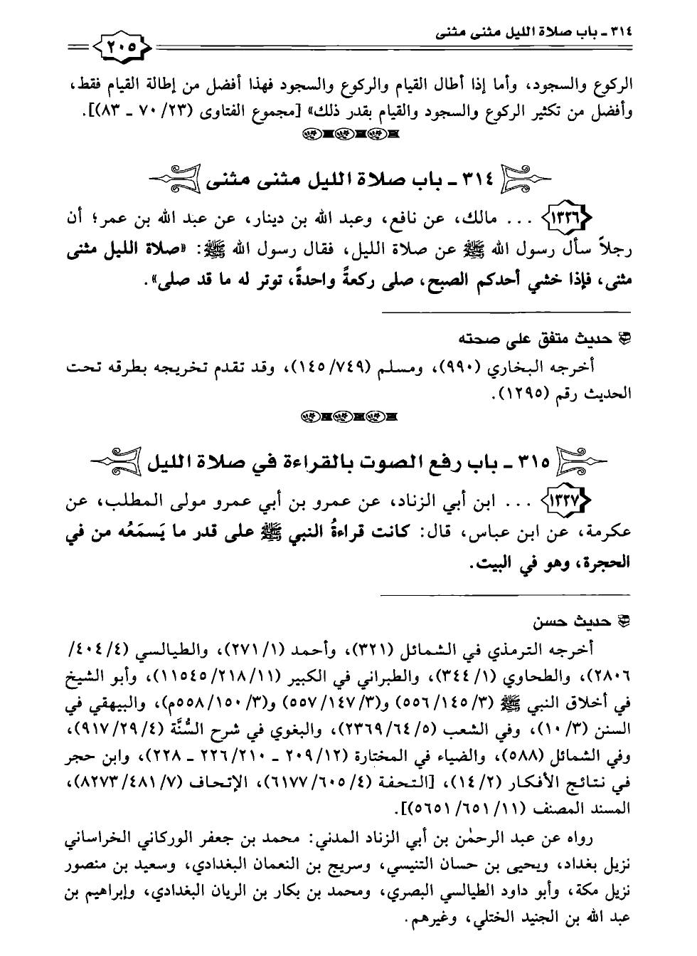 ٣١٤ - باب صلاة الليل مثنى مثنى
