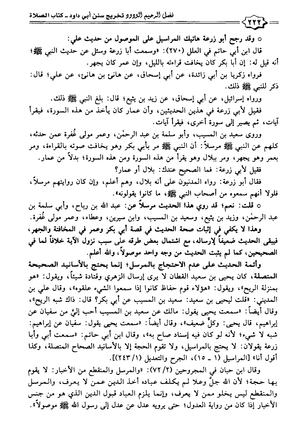 ° وقد رجح أبو زرعة هاتيك المراسيل على الموصول من حديث علي: