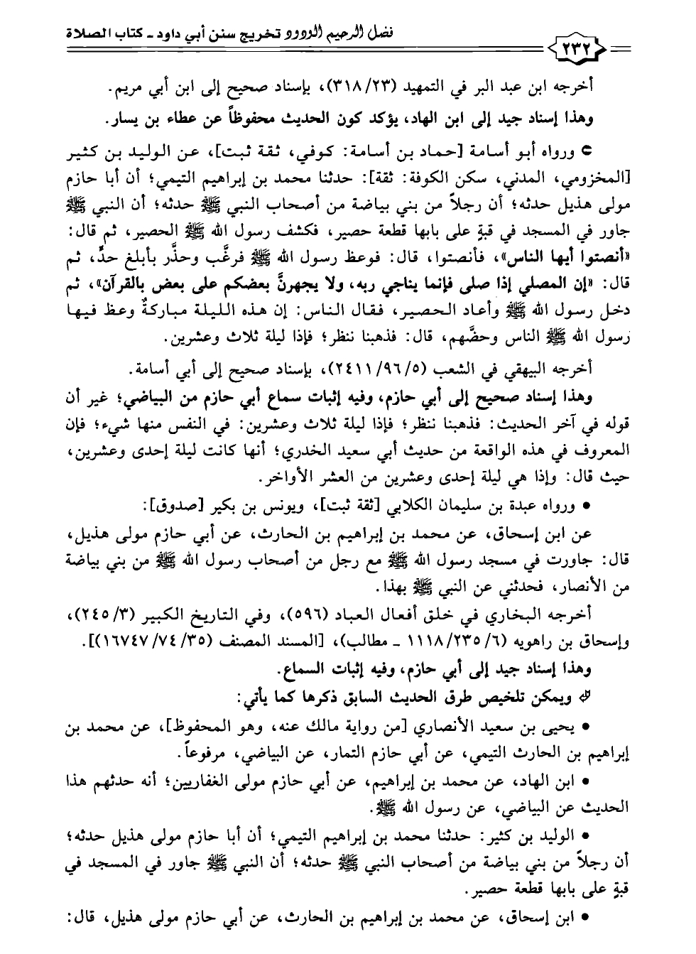 وهذا إسناد صحيح إلى أبي حازم، وفيه إثبات سماع أبي حازم من البياضي؛ غير أن قوله في آخر الحديث: فذهبنا ننظر؛ فإذا ليلة ثلاث وعشرين: في النفس منها شيء؛ فإن المعروف في هذه الواقعة من حديث أبي سعيد الخدري؛ أنها كانت ليلة إحدى وعشرين، حيث قال: وإذا هي ليلة إحدى وعشرين من العشر الأواخر.