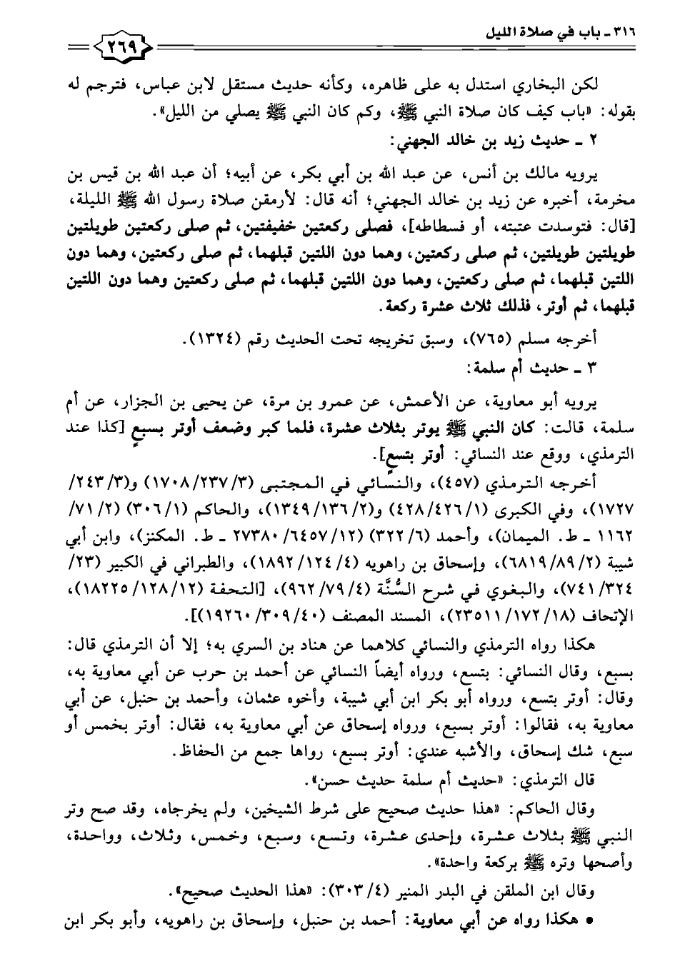 هكذا رواه الترمذي والنسائي كلاهما عن هناد بن السري به؛ إِلَّا أن الترمذي قال: بسبع، وقال النسائي: بتسع، ورواه أيضًا النسائي عن أحمد بن حرب عن أبي معاوية به، وقال: أوتر بتسع، ورواه أبو بكر ابن أبي شيبة، وأخوه عثمان، وأحمد بن حنبل، عن أبي معاوية به، فقالوا: أوتر بسبع، ورواه إسحاق عن أبي معاوية به، فقال: أوتر بخمس أو سبع، شك إسحاق، والأشبه عندي: أوتر بسبع، رواها جمع من الحفاظ.