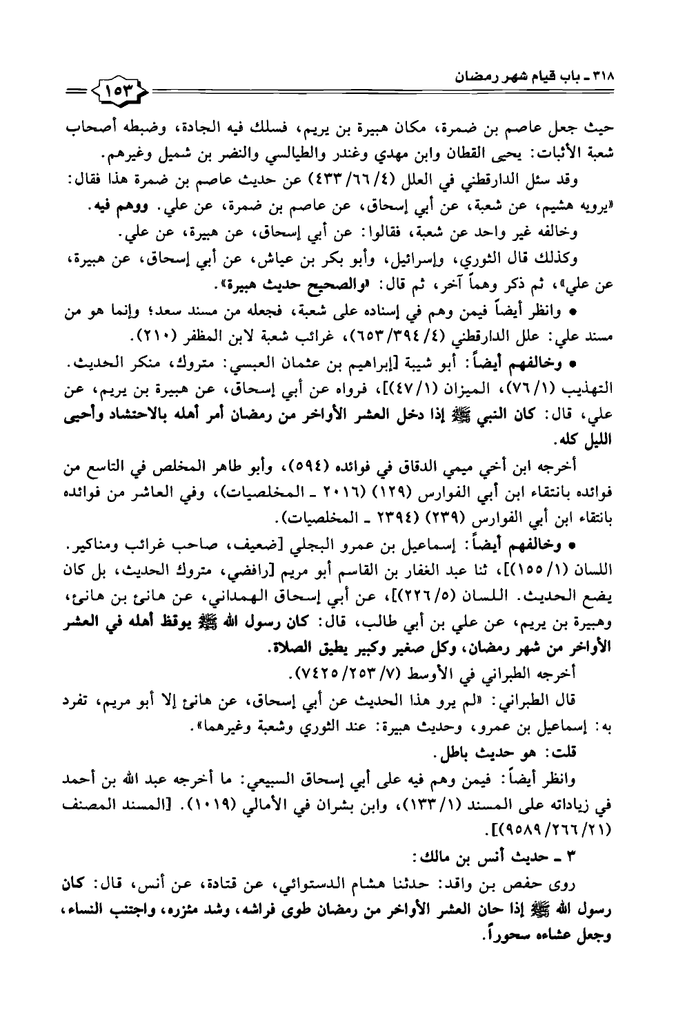 • وخالفهم أيضًا: أبو شيبة [إبراهيم بن عثمان العبسي: متروك، منكر الحديث. التهذيب (١/ ٧٦)، الميزان (١/ ٤٧)]؛ فرواه عن أبي إسحاق، عن هبيرة بن يريم، عن علي، قال: كان التبي -صلى الله عليه وسلم- إذا دخل العشر الأواخر من رمضان أمر أهله بالاحتشاد وأحيى الليل كله.