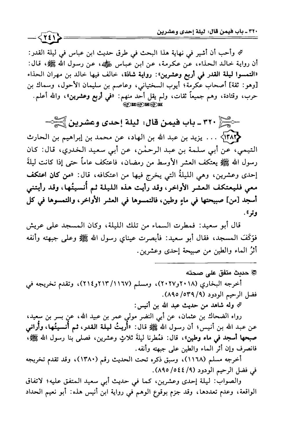٣٢٠ - باب فيمن قال: ليلة إحدى وعشرين