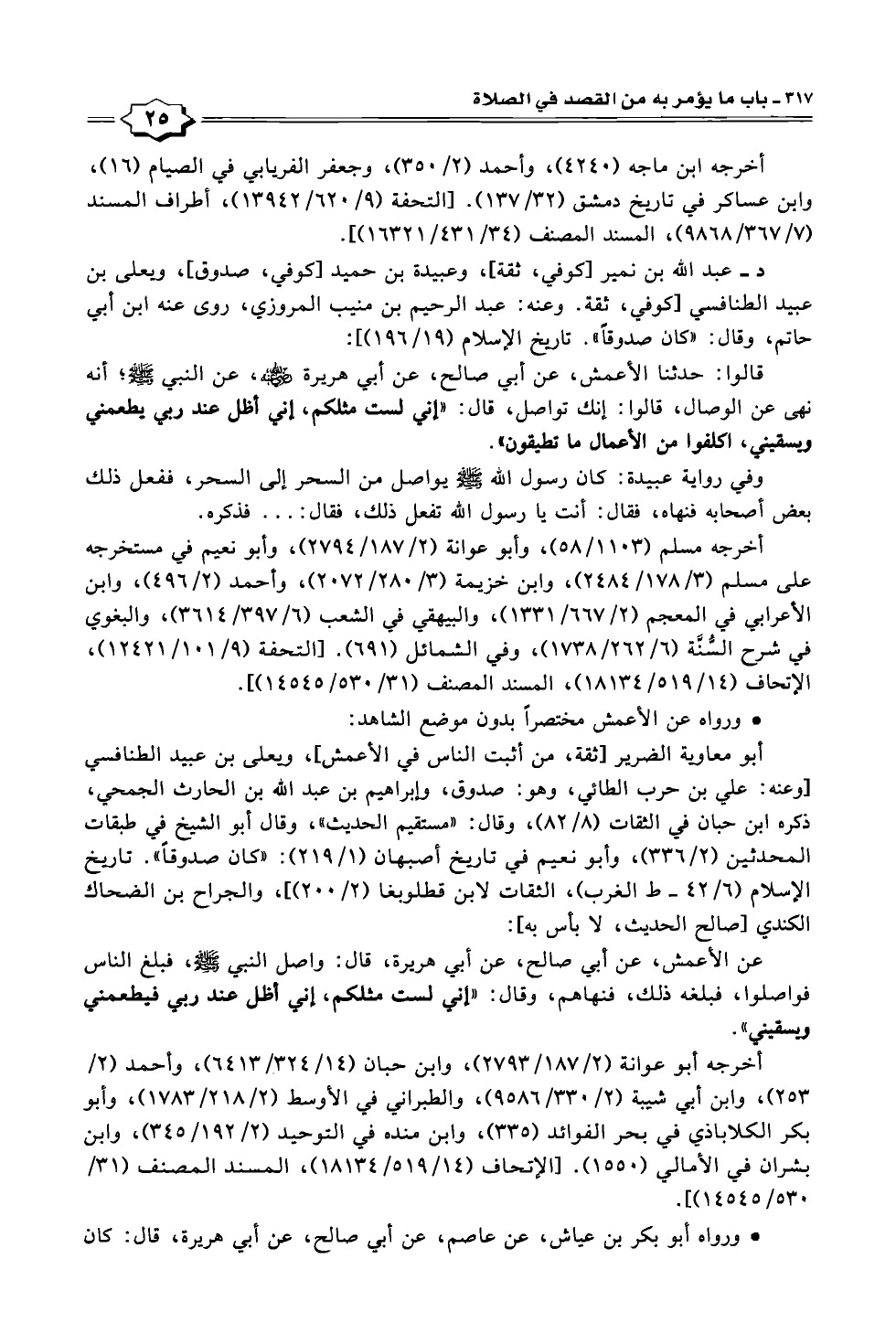 • ورواه عن الأعمش مختصراً بدون موضع الشاهد: