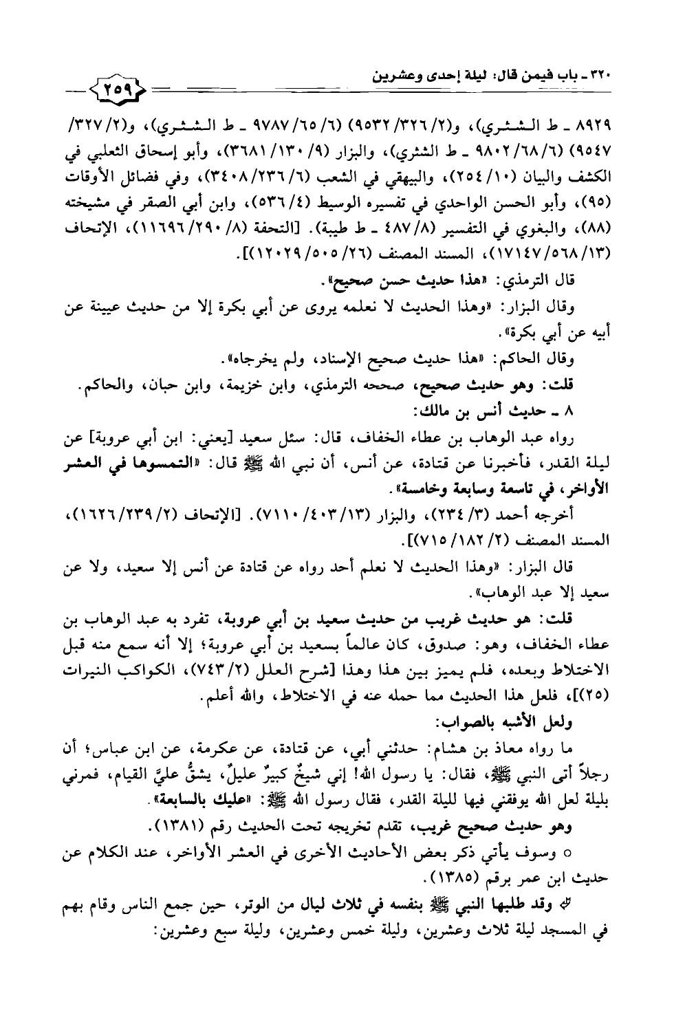 ° وسوف يأتي ذكر بعض الأحاديث الأخرى في العشر الأواخر، عند الكلام عن حديث ابن عمر برقم (١٣٨٥).